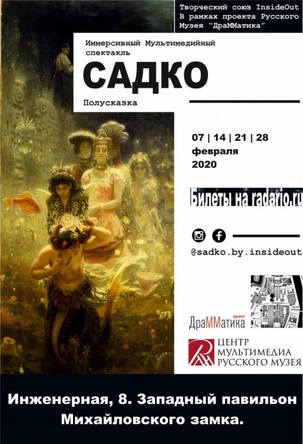 Центр мультимедиа Русского музея в рамках проекта «ДраММатика» совместо с творческим объединением InsideOut приглашает на иммерсивный мультимедийный спектакль по русской былине «Садко».