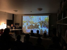 Познакомились с удивительно жизнерадостными работами русского художника Бориса Кустодиева. Заглянули в интерактивную мастерскую Виртуального Русского музея и вместе с Фафалей и Фафалиной посмотрели как расписывают металлические подносы жестовской росписью.