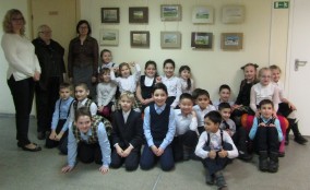 Наумова Анастасия провела небольшую экскурсию по своей выставке акварельных и графических работ “Дорогами Пушкина с этюдником. Времена года”. Рассказала ребятам об усадьбах, которые посещал Александр Сергеевич Пушкин, о няне поэта – Арине Родионовне, с показом фрагментов документального фильма своего отца - режиссера Валерия Николаевича Наумова о Пушкиногорье (автор фундаментального документального фильма “Пушкин. Последний акт”, с А. Кайдановским в главной роли).