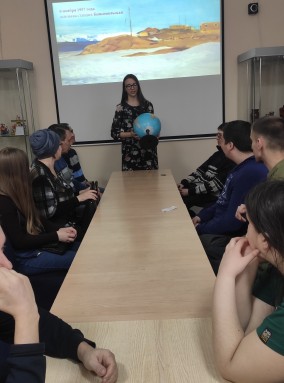 Мультимедийное занятие "Антарктида - материк за облаками" было посвящено 200-летию открытию Антарктиды Ф. Беллинсгаузеном и М.Лазаревым. В рамках мультимедийного занятия посетители познакомились с пейзажами и животным миром Антарктиды через произведения художников и фотографов, вошедшие в состав виртуальной выставки Государственного Русского музея "Антарктика в изобразительном искусстве". Особое внимание было уделено произведениям Павла Николаевича Михайлова, который был участником великой экспедиции и первым запечатлел в искусстве этот далекий и неизведаннй материк.