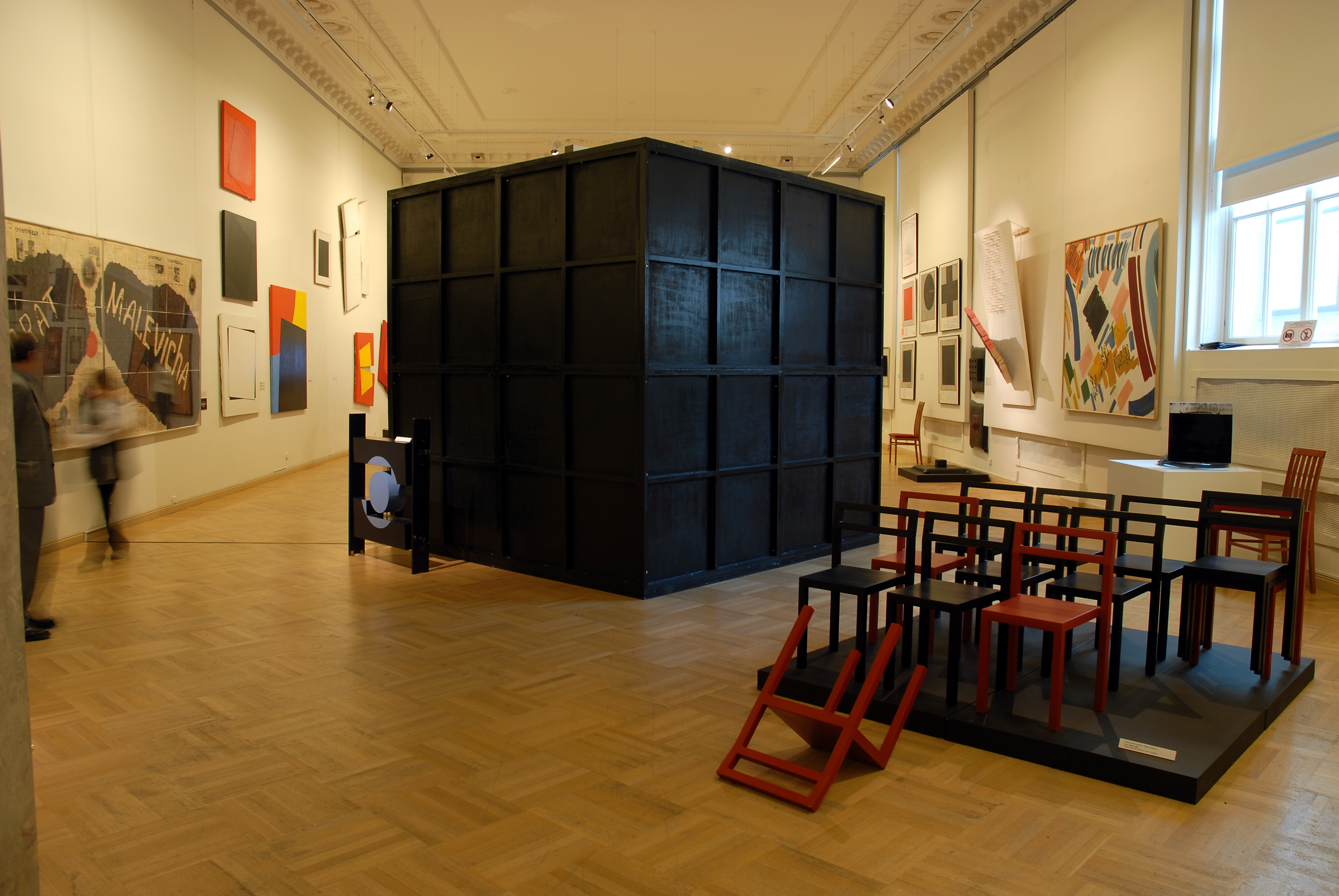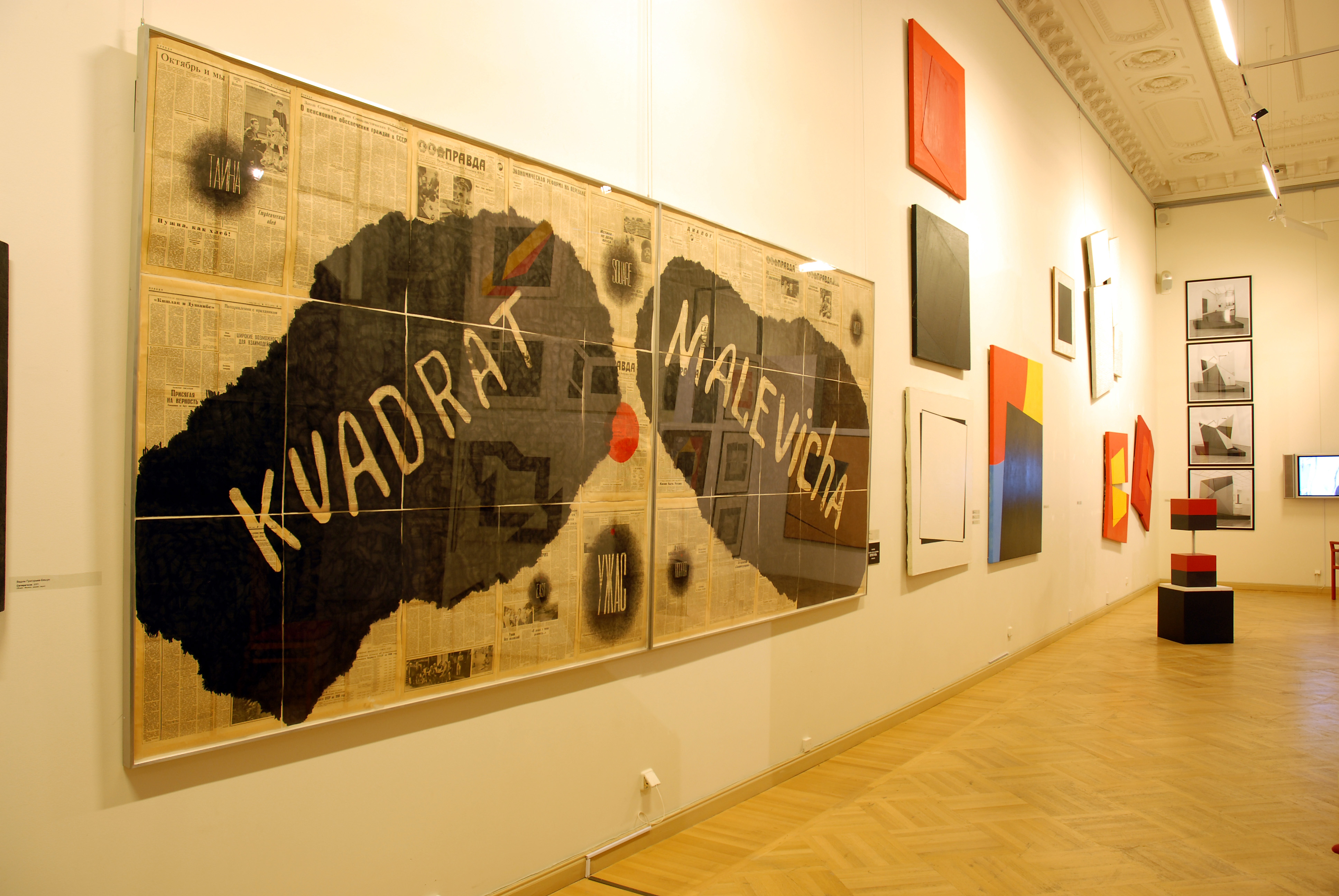 В выставке, которую сегодня мы бы назвали «блокбастером» участвовало 140 художников и более 400 произведений. Она «обещала» зрителю нечто иное, привлекательное (уже в самом названии). Реальный художественный процесс включал обилие всякого рода манипуляций, ассоциаций, апроприаций, аллюзий, диструкций и деконструкций с преобладанием иронических версий. Все это не традиционным образом сочеталось в залах – «механизм» неожиданных пересечений и сопоставлений собственно и составил основную драматургию проекта. Юмористические листы швейцарского художника Тэда Скапы, где герои, примеряющие квадрат на себя, «разбегаются» по полу, создавая для зрителя своеобразную навигацию, или сочетание баннера-фотографии как исторического фона знаменитой выставки «0,10», и фотографии с множеством квадратов, символизирующих новую конструктивность фирмы Армани. Весь корпус произведений включал и большое количество подлинников – триада Малевича «Квадрат», «Круг», «Крест» (1920-е годы, ГРМ), написанных для венецианской биеннале, «Квадрат» (1929, ГТГ), «Квадрат» (нач.1930-х) из эрмитажного собрания, супрематический фарфор, «Композиция с Джокондой» (1914) Казимира Малевича, и рядом столик из квадратов Эйлин Грей (1922), мебель для рабочих Николая Суетина и далее, далее...