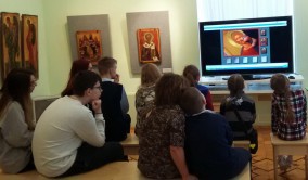 На экспозиции под руководством опытного педагога – Светланы Зубаревой – ребята познакомились с процессом создания иконы, а на практическом занятии в смешанной технике выполняли раскраску «Святой Николай». Дети подбирали тот или иной цвет для раскраски по правилам (канонам).