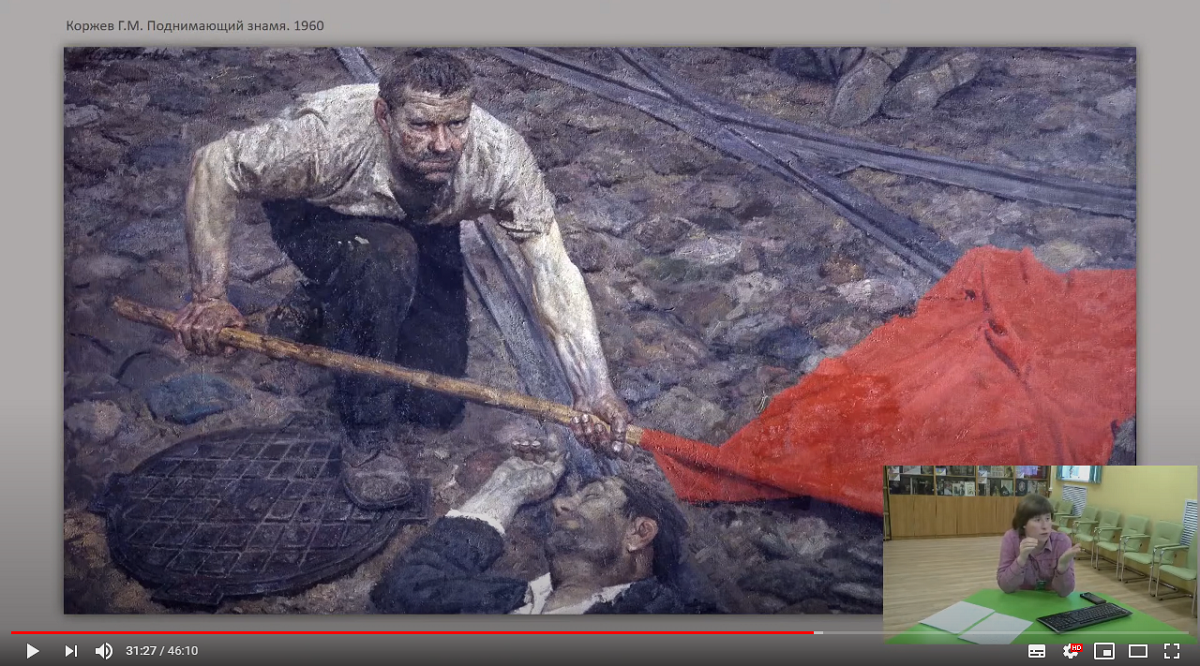 На экскурсии были представлены работы из разных музейных собраний. Среди картин, которые были предложены зрителю к сравнению были «Герника» Пабло Пикассо, «В Северной Франции» Альбина Эггер-Линца, «Инвалиды войны» Ю.И. Пименова, «Оборона Севастополя» А.А. Дейнеки и многие другие. Большая часть работ представлена на виртуальной выставке «Великая Отечественная война» на портале «Виртуальный Русский музей».