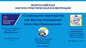 САЙТ КОНФЕРЕНЦИИ https://ds62spb.ru/13-oktyabrya-2020-goda-vserossijskaya-nauchno-prakticheskaya-konferentsiya-sotsialnoe-partnerstvo-kak-faktor-povysheniya-kachestva-obrazovaniya/