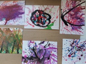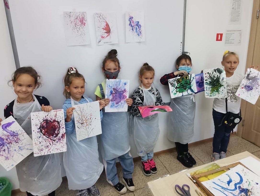 В завершении занятия дети создали свои абстрактные шедевры, используя самый необычный способ в рисовании - кляксографию.