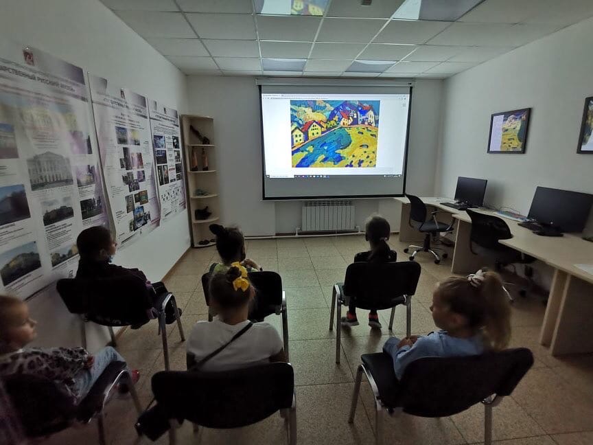 Также юные посетители познакомились с основоположником данного направления - русским художником Василием Кандинским, его биографией и произведениями искусства.
