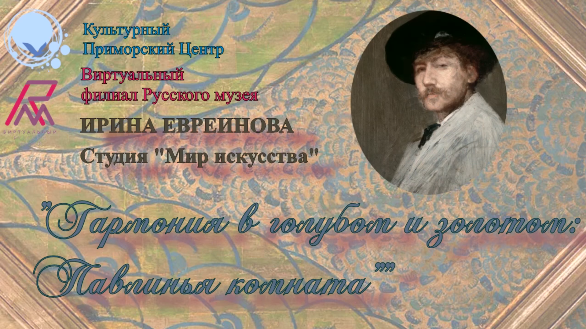 В рамках виртуальных встреч посетителям филиала было предложено видео, посвященное художнику Джеймсу Уистлеру "Гармония в голубом и золотом: Павлинья комната". Джеймс Уистлер художник, который учился в Санкт-Петербурге, впоследивствии оказал большое влияние на русских художников.