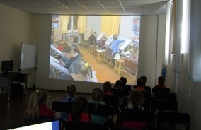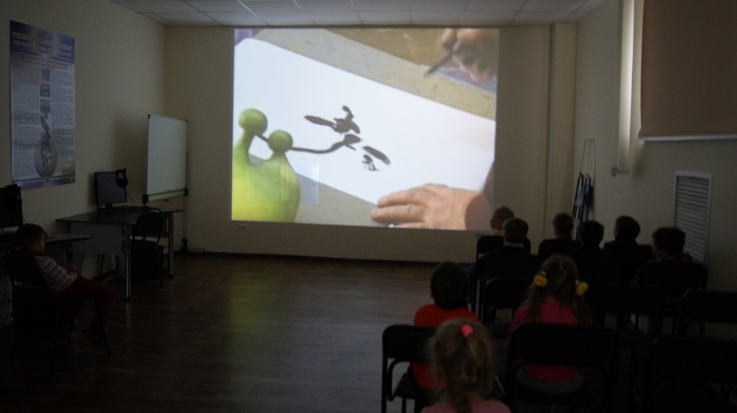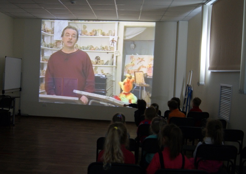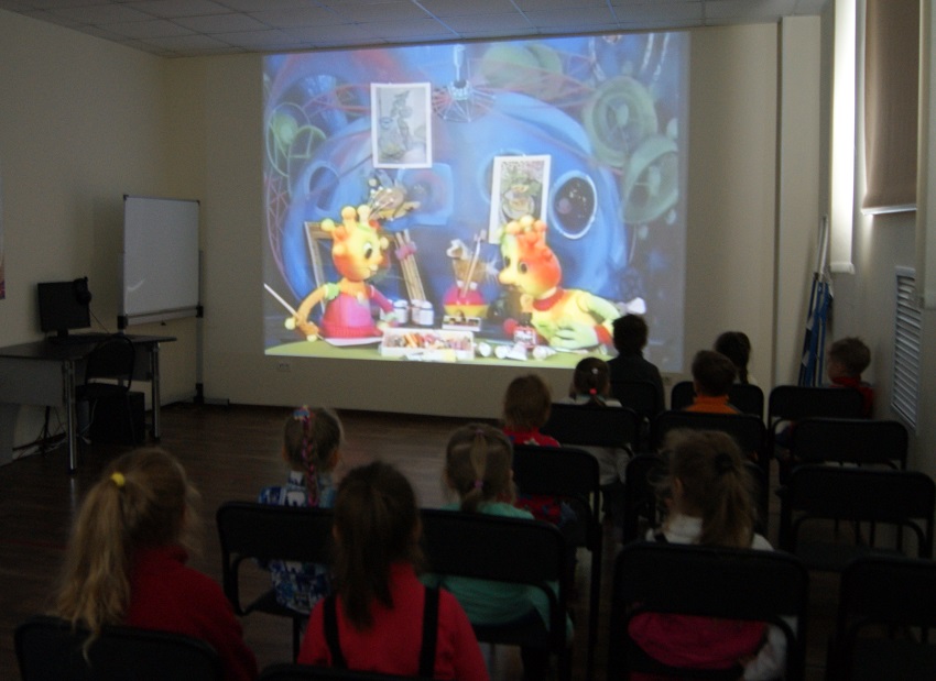 Эти ребята оказались здесь первый раз. С интересом послушали информацию о Русском музее и посмотрели фильм «Кляксы» из цикла «В мастерской художника». Дети рассказали, что любят рисовать. И используют для этого карандаши, фломастеры, акварельные краски, гуашь, ручки, мелки. Иногда случается досадная оплошность – на листок падает клякса. Или много воды на кисточке было, или кто-то отвлёк, но продолжать работу на этом листке уже не хочется. Но оказывается, клякса не только не является препятствием для окончания рисунка, а может служить  его основой. В фильме показано, как из клякс разных форм и размеров могут получиться разнообразные рисунки. Надо только чуть внимательнее, чем обычно, взглянуть на, казалось бы, совсем непонятную кляксу.