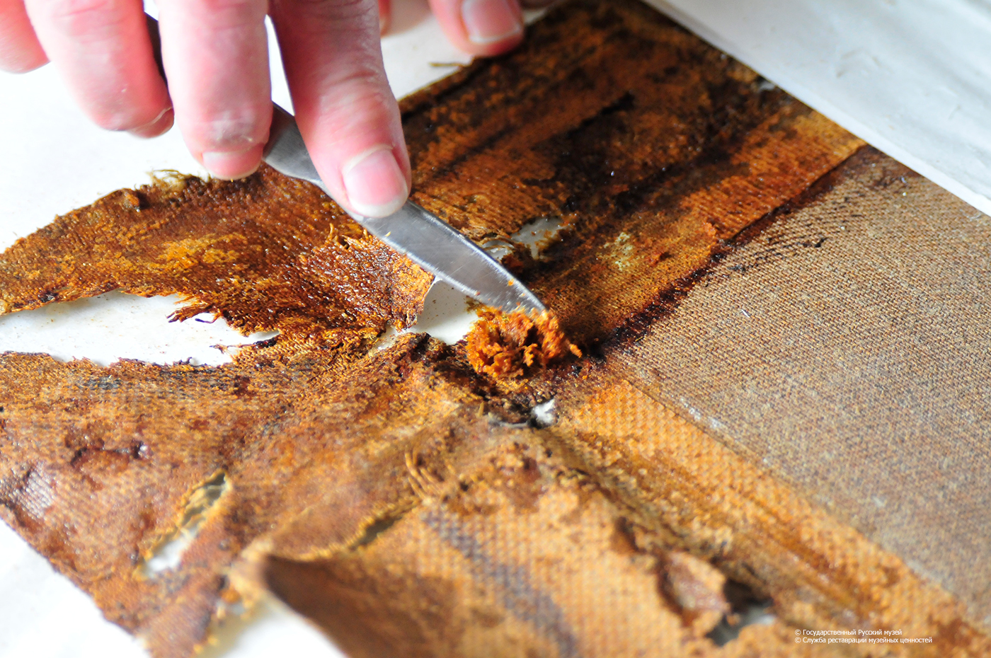 Художник работал на картиной на протяжении шести лет: неоднократно менял композицию и цветовое решение, переделывал образы, переписывал целые фрагменты. Эти трансформации позднее плохо повлияли на состояние сохранности полотна. Многослойность, отсутствие межслойных обработок, фактурные прописки по высохшему красочному слою, привели к возникновению закономерных процессов нарушения связи между слоями. Естественные процессы старения вызывали развитие кракелюра — мелких трещинок на поверхности картины. Со временем к этому добавились и другие дефекты. К 2019 году техническое состояние картины требовало сложной комплексной реставрации.