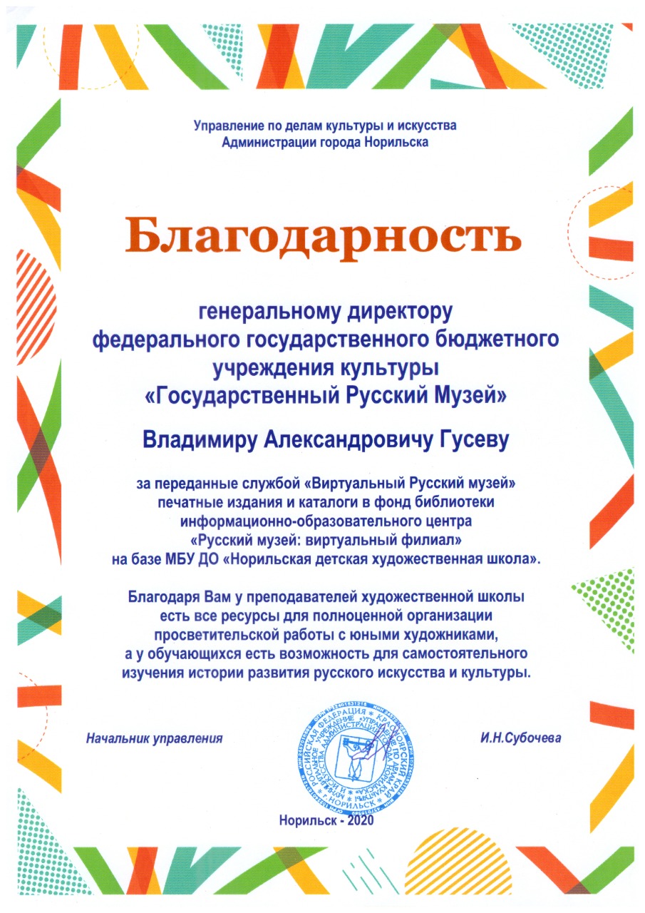 Хотим выразить слова благодарности руководству и службе «Виртуальный Русский музей» Государственного Русского музея!