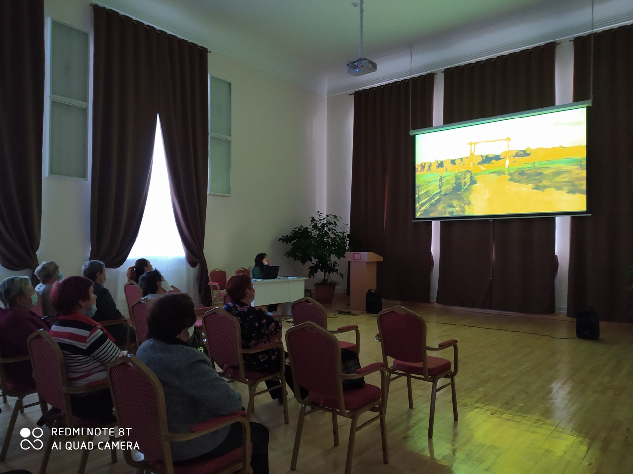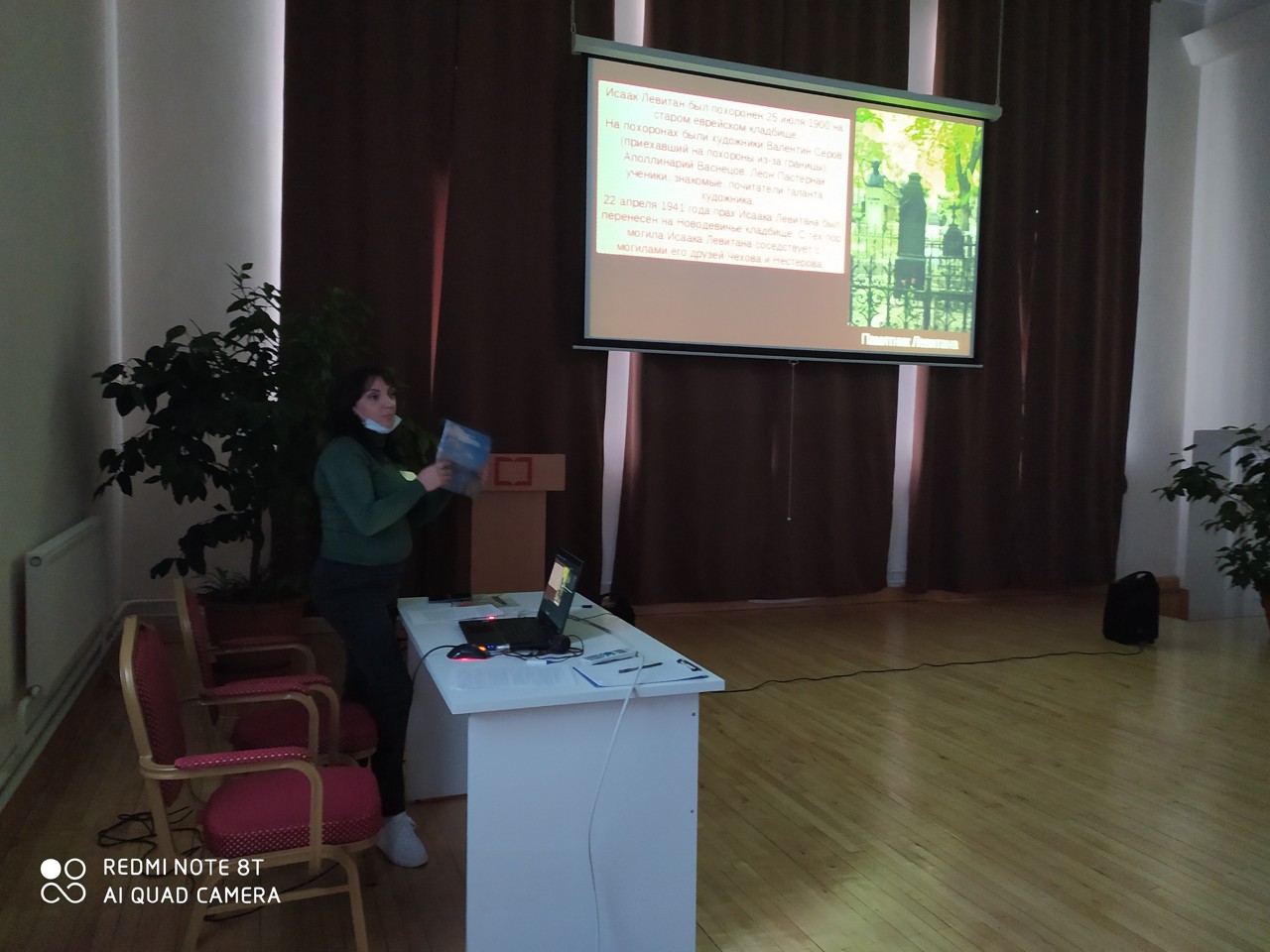 Мероприятие началось со слайд-беседы, в ходе которой, слушателям было рассказано о том, как зарождался пейзаж в России, какие претерпевал изменения. Они познакомились с выдающимися художниками-пейзажистами и узнали о том, какой вклад внес каждый из них в развитие русской пейзажной живописи. После чего заведующая виртуальным филиалом Русского музея Агабекян Сюзанна Гайковна рассказала гостям мероприятия о жизни и творчестве великого пейзажиста Исаака Ильича Левитана. В завершении был показан фильм: «Исаак Левитан» из медиатеки Русского музея.