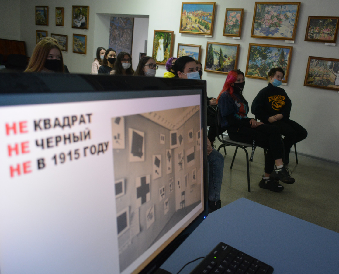 На виртуальной экскурсии, посвященной русскому авангарду, побывали студенты факультета дизайна Чебоксарского профессионального колледжа им. Н.В. Никольского под руководством педагога Жанны Нестеровой. Русский музей располагает одной из крупнейших коллекций произведений русского авангарда и его ведущих мастеров — Казимира Малевича, Василия Кандинского, Михаила Ларионова, Павла Филонова и других. В виртуальном филиале Русского музея в КВЦ «Радуга» будущие дизайнеры открыли для себя секреты цветовой музыки Василия Кандинского и заглядывали в супрематическую тьму «Черного квадрата».