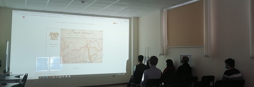 Благодаря интерактивному приложению «Строгановский дворец» на образовательном портале «Здравствуй, музей!», присутствующие узнали о истории рода известных солепромышленников Строгановых и о Строгановском дворце, который является выдающимся памятником архитектуры и входит в архитектурно-художественный комплекс Русского музея.