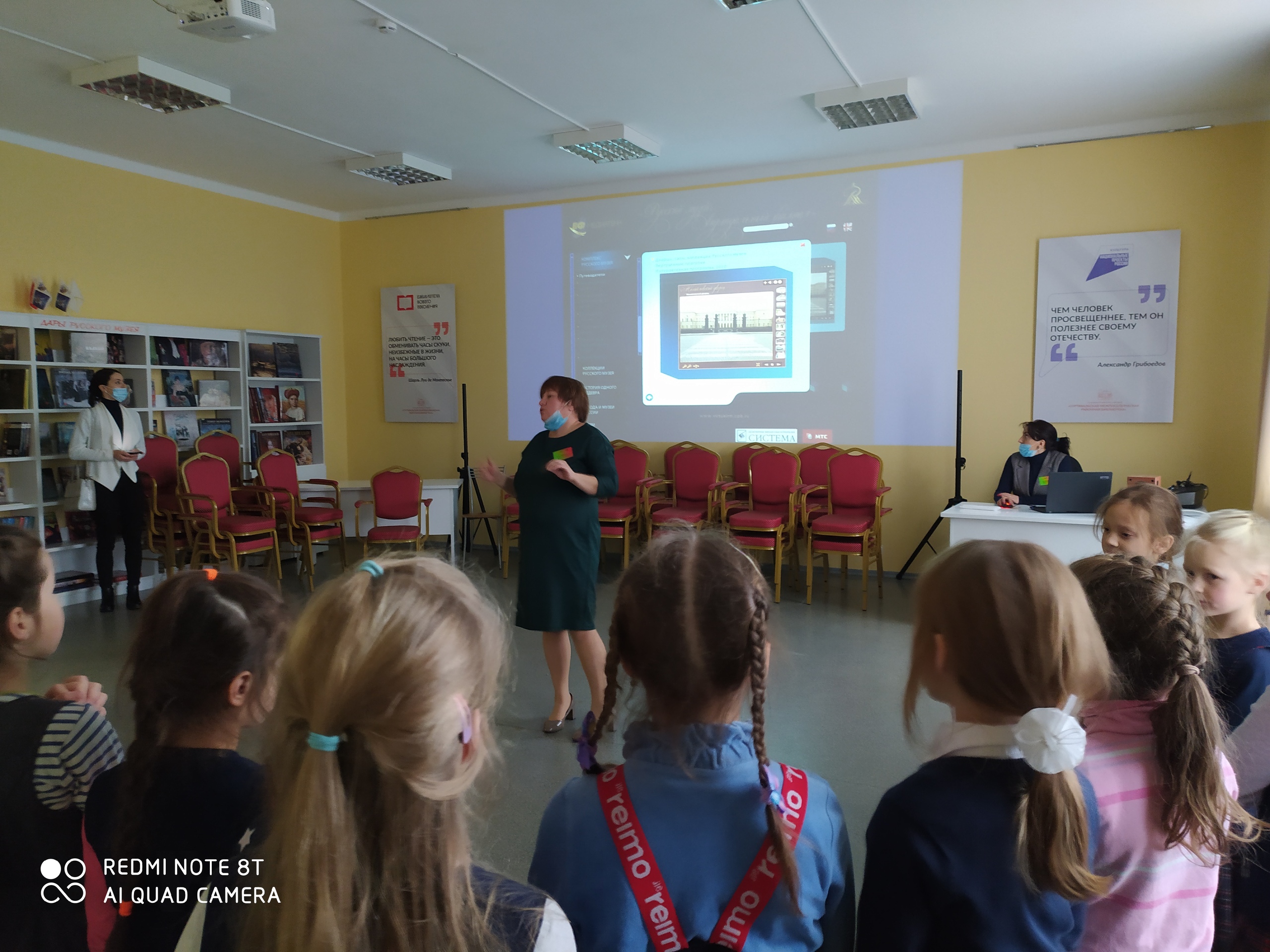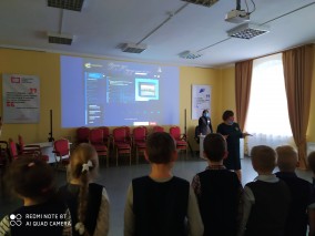Заведующая филиалом Сюзанна Гайковна Агабекян рассказала первоклассником о том, что такое виртуальный филиал, какие он имеет ресурсы, что такое медиатека и как ей пользоваться, показала какие есть игры в медиатеке Русского музея.
