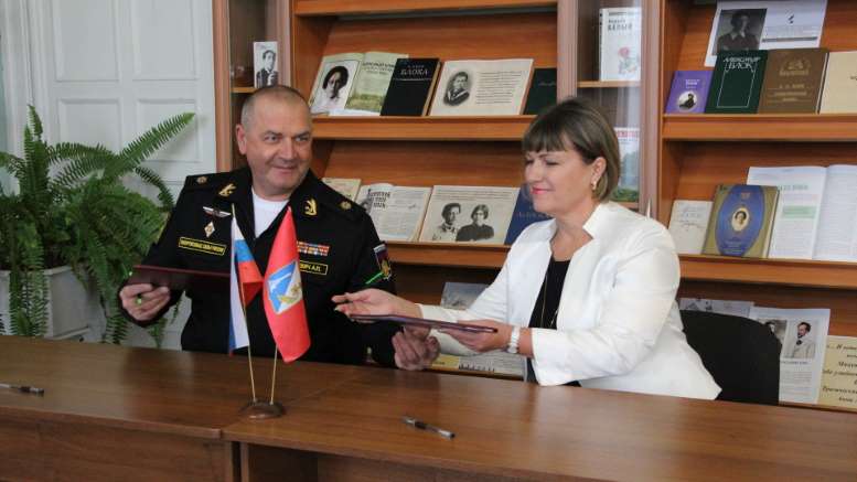 4 декабря в Центральной городской библиотеке им. Л.Н. Толстого в рамках работы по историко-патриотическому воспитанию подрастающего поколения состоялось подписание Соглашения о взаимодействии и сотрудничестве между Государственный бюджетным учреждением культуры города Севастополя «Региональная информационно-библиотечная система» (директор — Е. А. Волкова, Заслуженный работник культуры Севастополя) и Черноморским высшим военно-морским ордена Красной Звезды училищем имени П.С. Нахимова (начальник — Гринкевич А. П., кандидат военных наук, доцент, контр-адмирал).