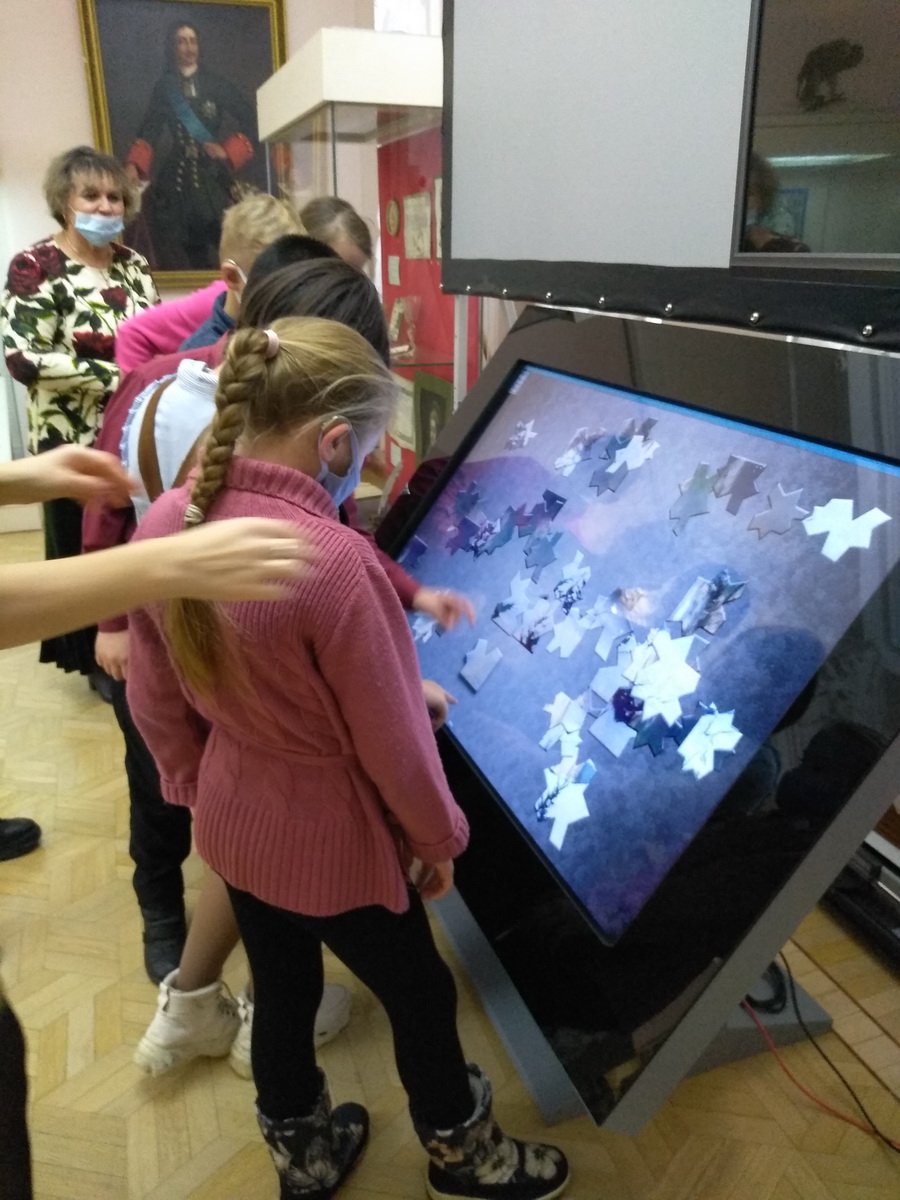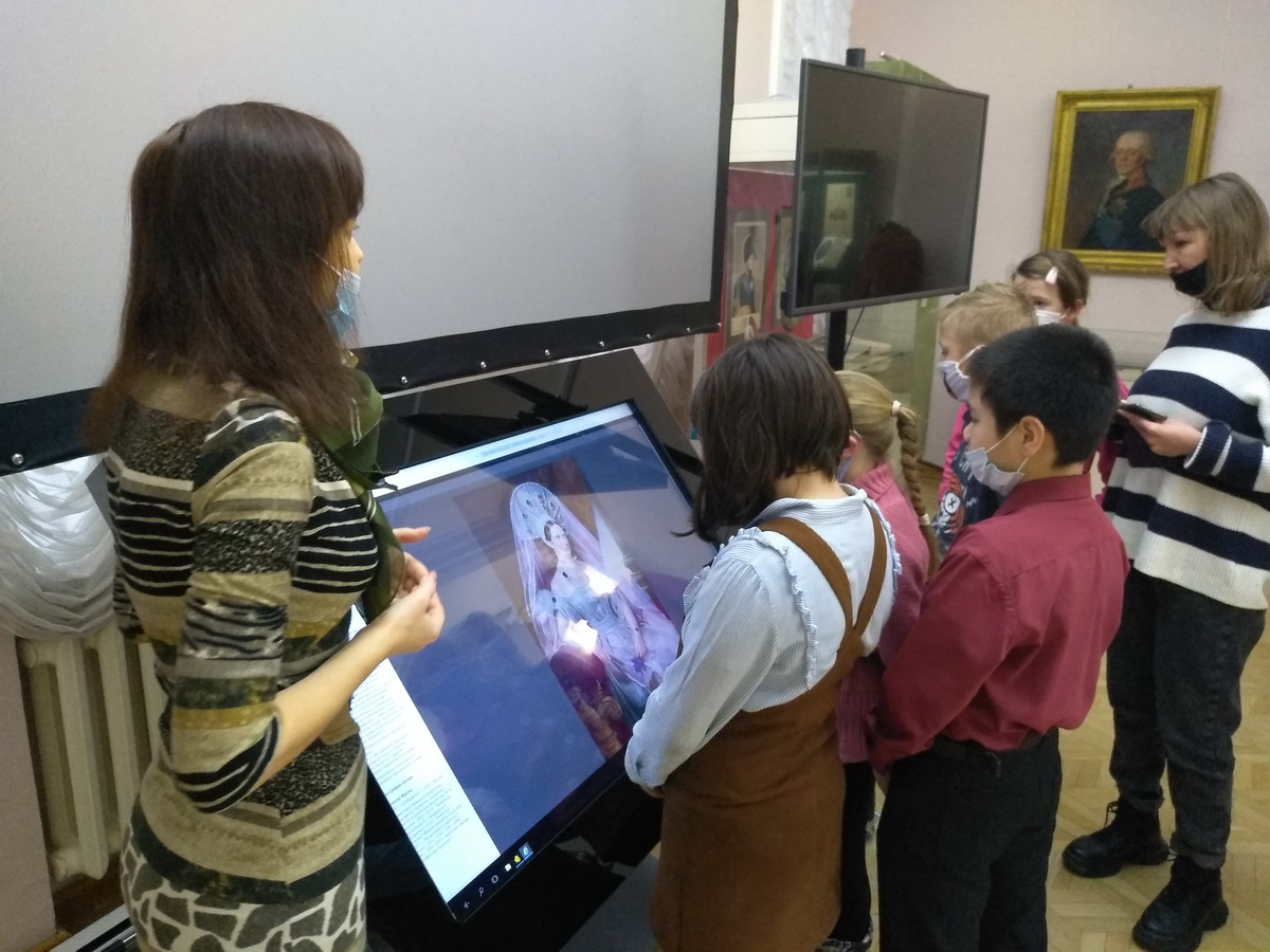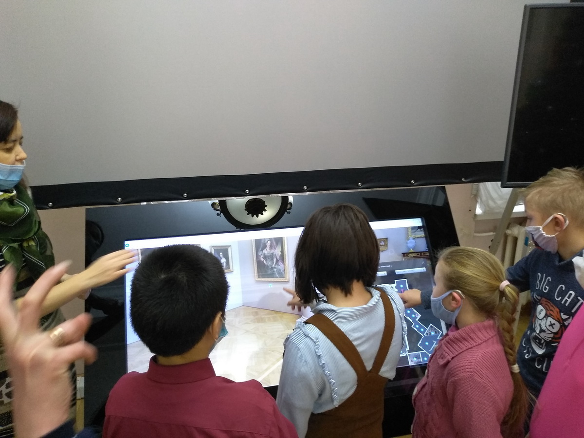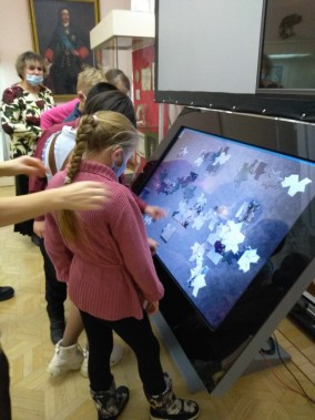 Ребята смогли совершить и виртуальное путешествие на выставку «Николай I», где в залах смогли найти портрет его супруги императрицы Александры Федоровны и внимательно рассмотрели её костюм.