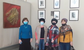 Гости также побывали на выставке, посвященной 75-летию Победы из собрания Вольского музея. На выставке представлена серия литографий и акварелей Андриана Владимировича Каплуна, который провел войну в блокадном Ленинграде. Его работы посвящены практически полностью разрушенным во время военных действий историческим архитектурным памятникам города Петергофа. Офорты ленинградских художников Валентины и Леонида Петровых, показанных на выставке – это подлинные художественные документы о блокаде непобежденного города, это рассказ о нравственной силе советского человека в борьбе с фашизмом, немая сцена, которая понятна и без слов.