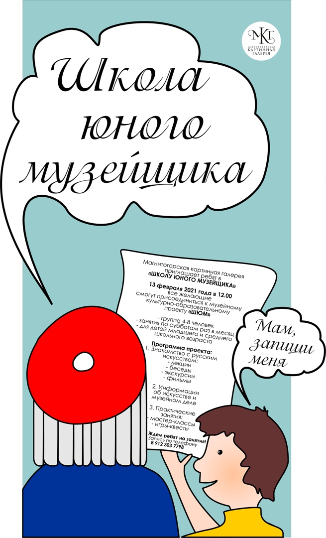 В январе открылся набор в  «ШКОЛУ ЮНОГО МУЗЕЙЩИКА»! Начиная с февраля  2021 года в Магнитогорской картинной галерее на базе информационно-образовательного центра «Русский музей: виртуальный филиал»  все желающие смогут присоединиться к музейному культурно-образовательному проекту.  Проект рассчитан на детей младшего и среднего школьного возраста. Предлагается поэтапное посещение занятий  в течение года.