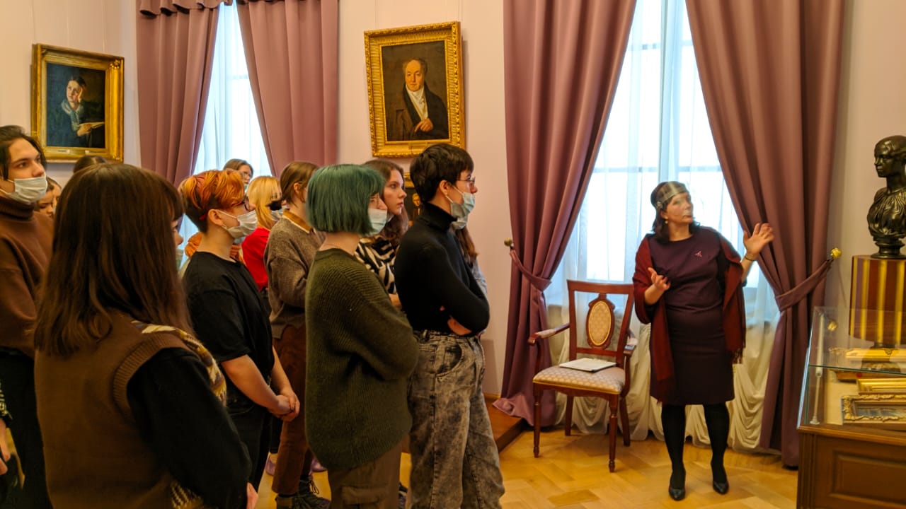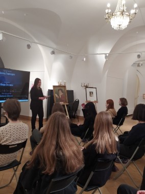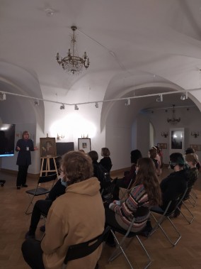 В завершение занятия ребята посетили зал Дворца, где находятся работы А.Г. Венецианова и его учеников. Там, помимо основной экспозиции, сейчас проводится временная выставка трех работ этого выдающегося художника.