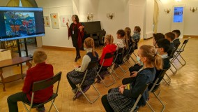 В Тверской областной картинной галерее школьники посетили Виртуальный филиал Русского музея. Для них была проведена лекция «Сочинение по картине», посвященная работе Николая Константиновича Рериха «Заморские гости». Благодаря виртуальному туру ребята смогли рассмотреть целый зал, посвященный Рериху, и таким образом ближе познакомиться с творчеством художника, а также многое узнать о характере и особенностях его живописи. Юные посетители увидели подлинную работу Н.К. Рериха "Фантастический пейзаж", переданную Русским Музеем нашей картинной галерее в 1929 году.