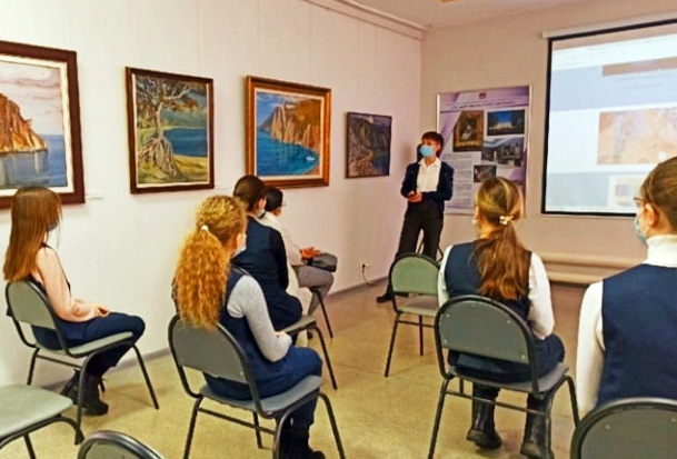 На выставке «Стихия воды в творчестве Людмилы и Аркадия Акцыновых» лицеисты познакомились с уникальной живописной техникой этих художников: они смешивали масляные краски с воском, добиваясь особенной светоносности полотен.