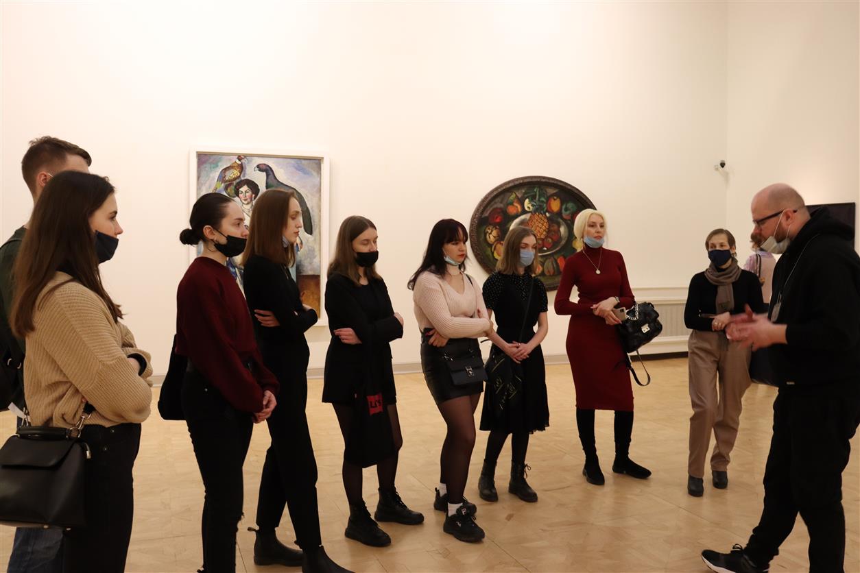 Экскурсию для студентов нашего вуза провёл заведующий сектором по работе с молодёжной аудиторией Русского музея, руководитель Студенческого клуба Русского музея, историк искусства, кандидат социологических наук Антон Владимирович Шевердяев.
