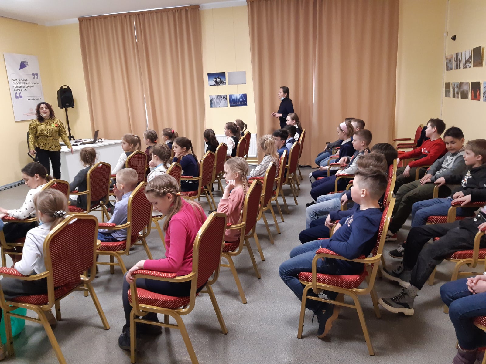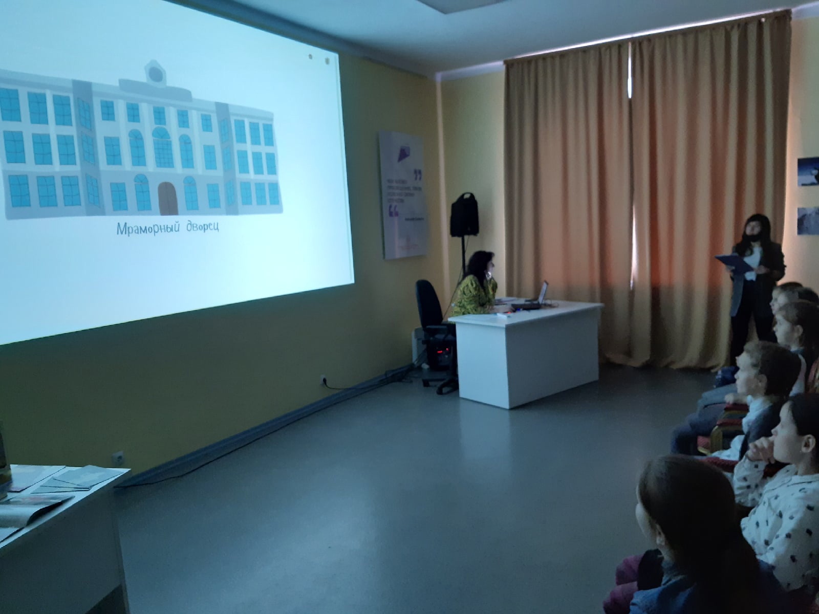 Начался день с просветительской программы для детей " Я поведу тебя в музей". На которой учеников 3 класса школы N1 ждало увлекательное интерактивное путешествие по залам Русского музея. После прослушанного материала ребята приняли участие в викторине. Школьники были очень активными и ответили на все вопросы.