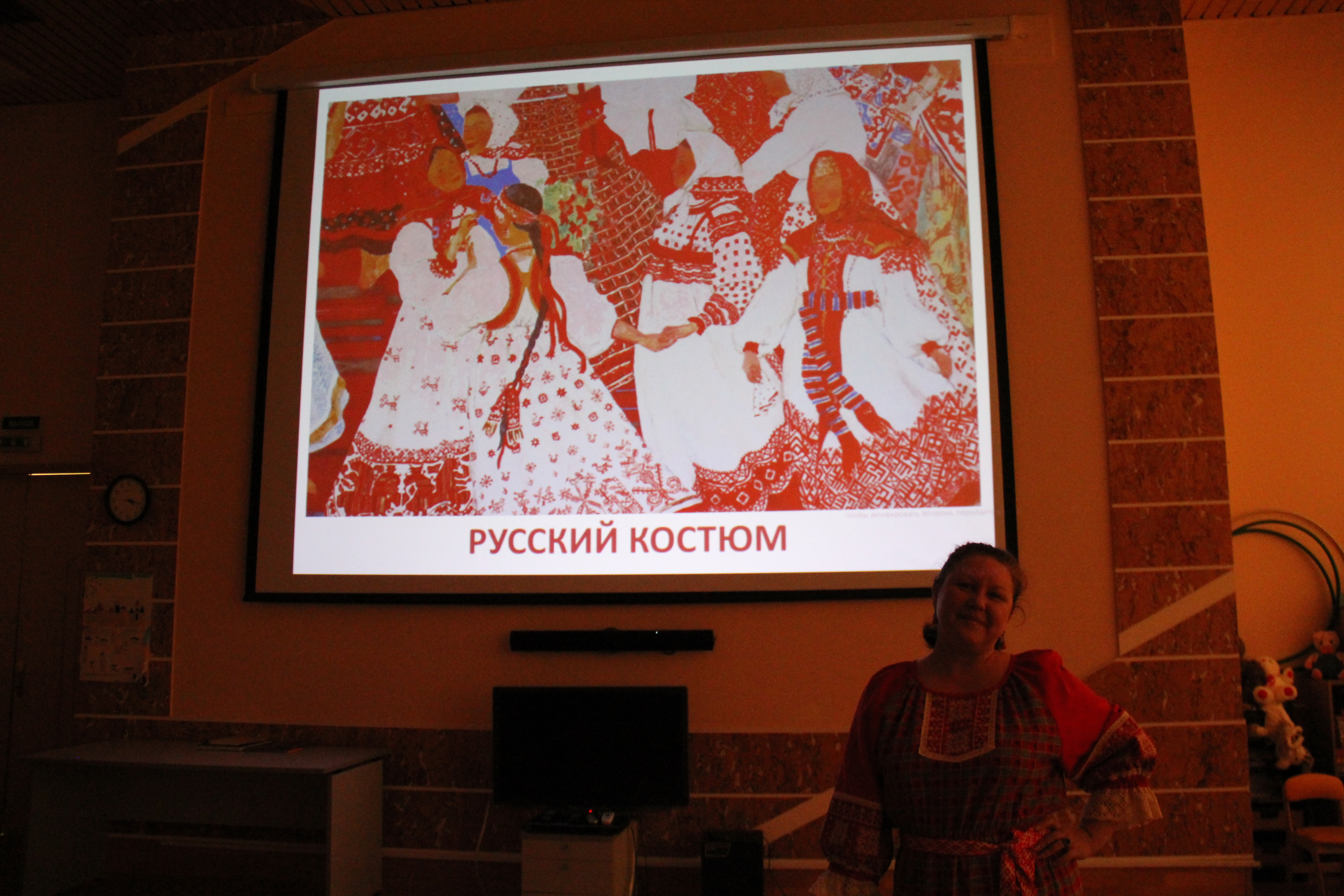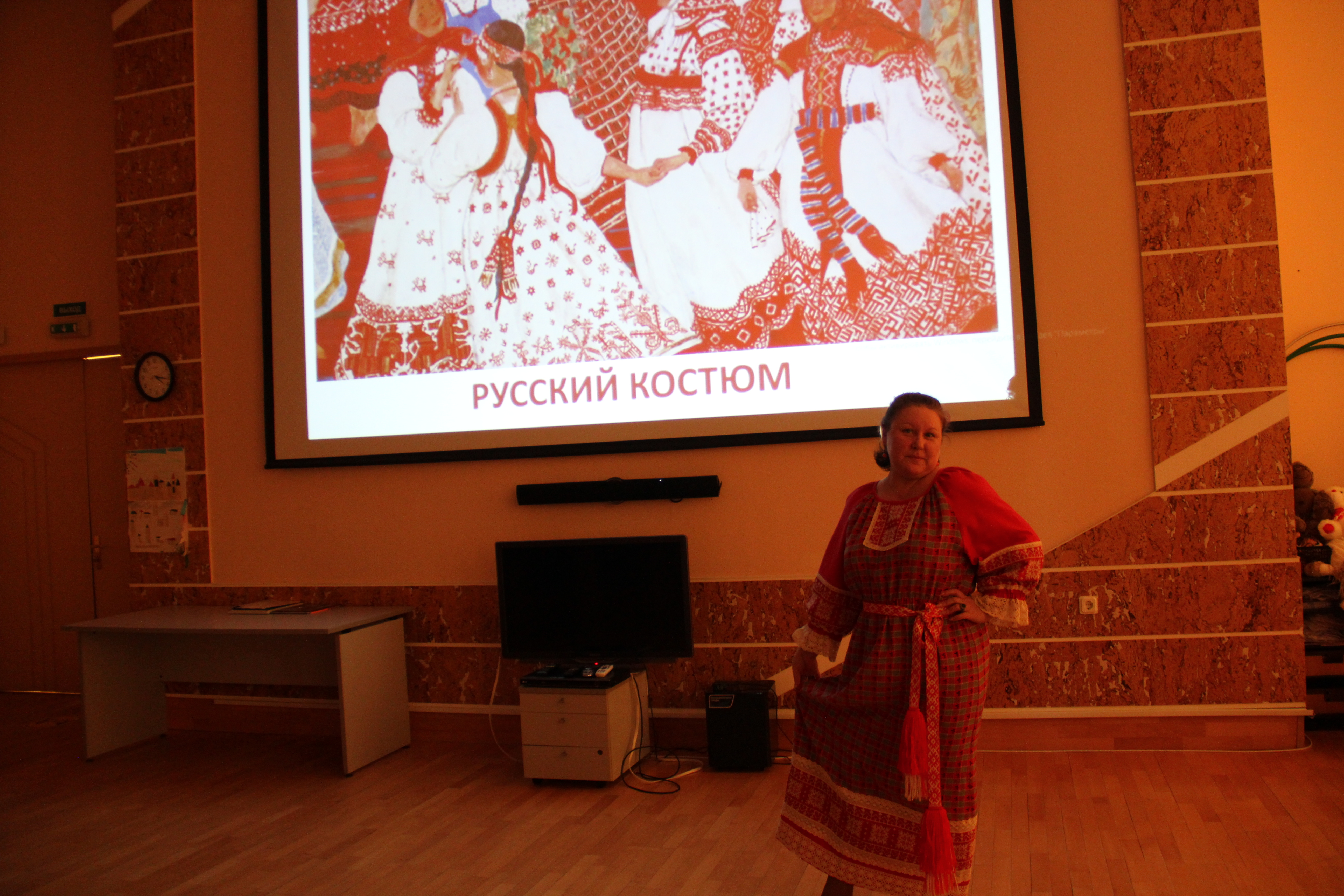 Свою экскурсию для отдыхающих мы решили посвятить русскому костюму. Рассматривая картины, мы смогли окунуться в прошлое. Узнать, как менялась и совершенствовалась одежда, насколько богата и проста была. А самое важное, что нам хотелось рассказать зрителям, что русский костюм рассказывает нам не только, как был скроен и сшит, а поведает о быте, труде, нравах, приметах и устоях русской жизни.