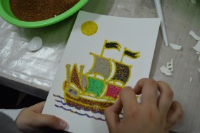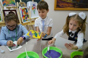 Подарком победителям стала интерактивная экскурсия «От пигмента до шедевра». Ребята познакомились с гениальным мастером эпохи Возрождения Леонардо да Винчи, узнали, с какими трудностями сталкивались художники в то далекое время и раскрыли секрет создания темперной краски, которой даже смогли порисовать. А в творческой мастерской каждый создал своими руками сувенир на память о знаменательном дне — картину из цветного песка.