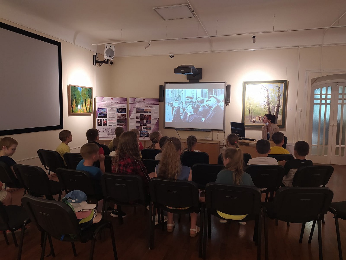 Страницы истории Великой Отечественной войны нам раскрыли произведения художников Республики Коми. Школьники так же узнали, какую роль играли художники во время войны, и как дети помогали приближать Победу. На память ребята создали бумажных журавликов, посмотрели мультфильмы о войне. В завершении у закладного камня в Кировском парке, откуда отправлялись на фронт сыктывкарцы, все вместе почтили память погибших минутой молчания.