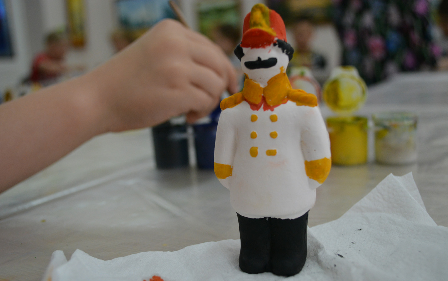Закрепить новые знания об историческом костюме и военной форме ребята отправились на творческую мастерскую, где расписали отважных генералов всех родов войск.