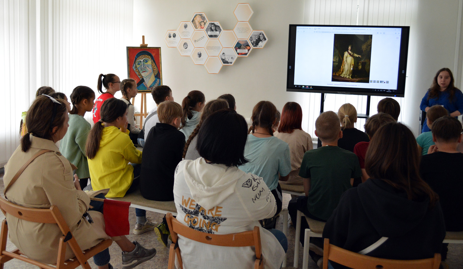 Ребята вспомнили подвиги Александра Невского и его победу на Чудском озере, восхитились героизмом Александра Суворова и его воинов в легендарном переходе через Альпы на картине Василия Сурикова, поразились победе брига «Меркурий» в битве с двумя турецкими кораблями, которую запечатлел маринист Иван Айвазовский.