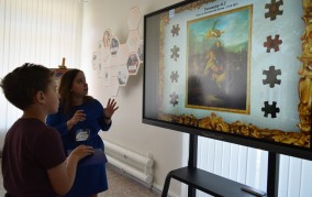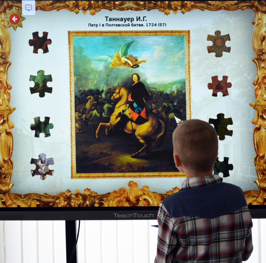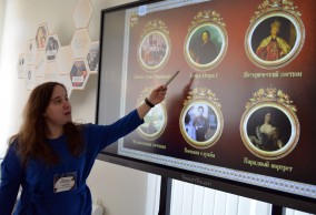 В преддверии Дня России юные знатоки отечественной истории пополнили свои знания в Виртуальном филиале Русского музея в КВЦ «Радуга». На виртуальной экскурсии «Моя Родина — Россия» ребят столичного лицея №4 ждала встреча с великими людьми России - полководцами и историческими деятелями. В мельчайших деталях лицеисты рассмотрели парадные портреты, батальные сцены и исторические полотна из собрания Русского музея, посвященные героическому прошлому России.