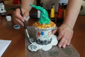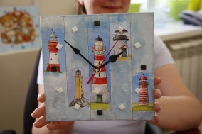 На занятиях мы не только рисуем, занимаемся лепкой, но и мастерим потрясающие воображение предметы. Некоторые из них имеют утилитарное назначение: часы, которые можно поставить на стол или повесить на стену, при этом не только наслаждаться привлекательностью простого в быту предмета, но и научиться понимать время и использовать его рационально. Шкатулка – еще один предмет, который мы мастерили на занятии. Ее можно применить для хранения мелких предметов или подарить дорогому человеку. Интерьерный, декоративный предмет – волшебный домик для сказочного жителя и многое другое. И это не простые вещи, которых масса в магазине, это авторские уникальные произведения, наделенные смыслом и индивидуально исполненные.