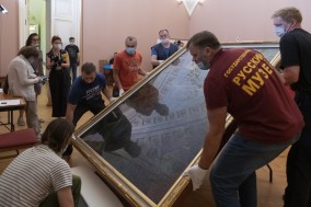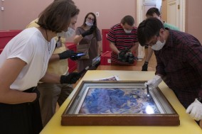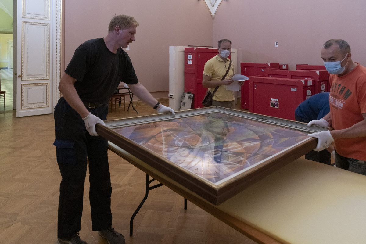 На процедуре распаковки ящиков с итальянскими произведениями было задействовано около 30 специалистов Русского музея: