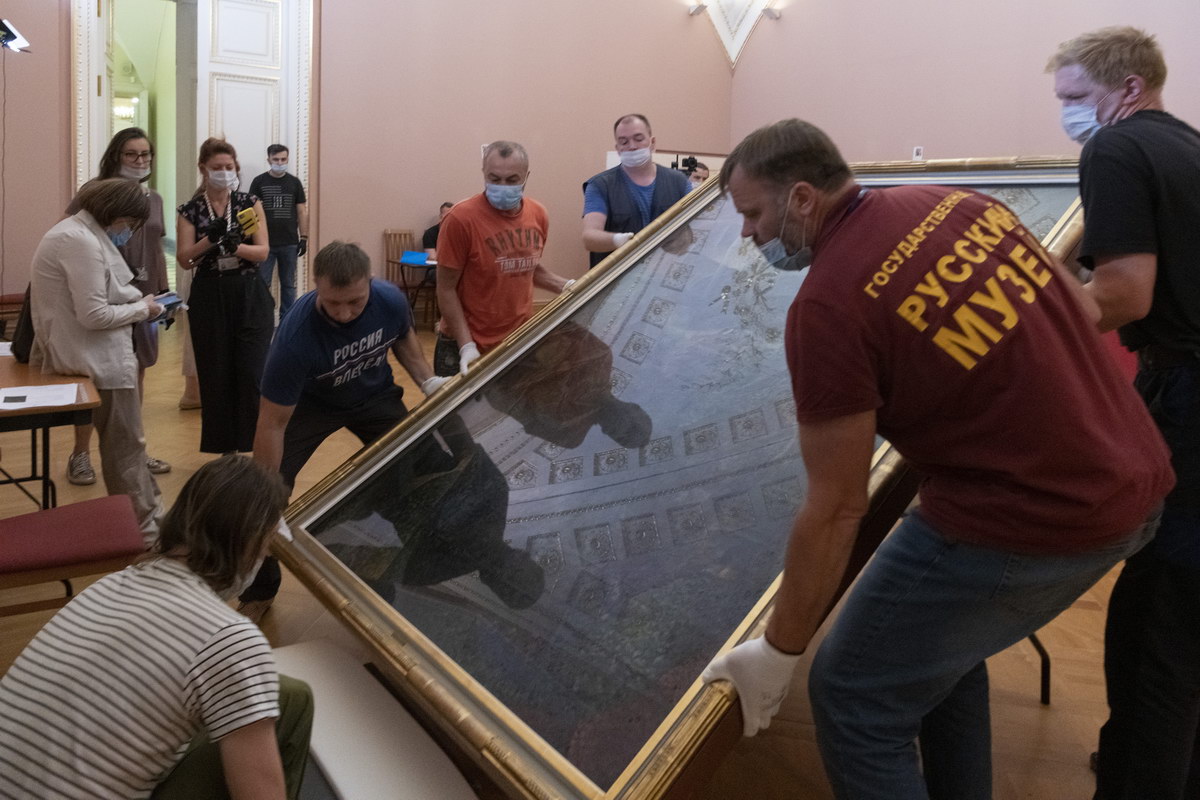 Из-за пандемии изменился привычный порядок подготовки выставки - коллеги с итальянской стороны не смогли приехать в Россию. В кратчайшие сроки Русский музей сделал всё возможное, чтобы итальянские реставраторы смогли удаленно присутствовать на процедуре распаковки произведений - для них из залов Михайловского замка велась закрытая прямая трансляция. Впервые реставраторы Русского музея и их итальянские коллеги работали в таком режиме.