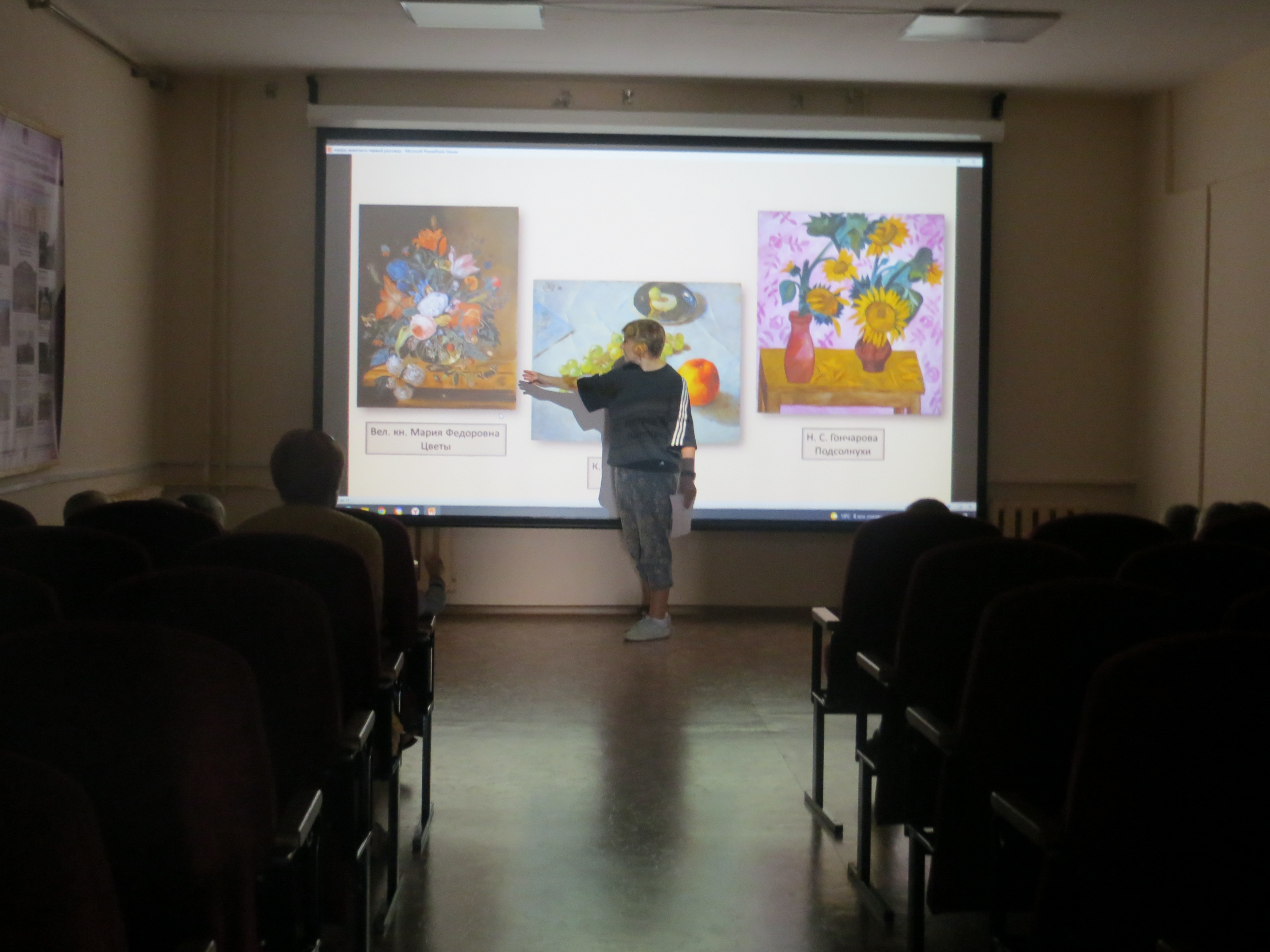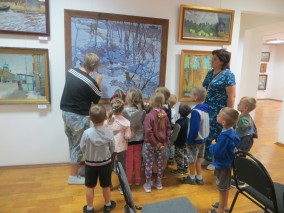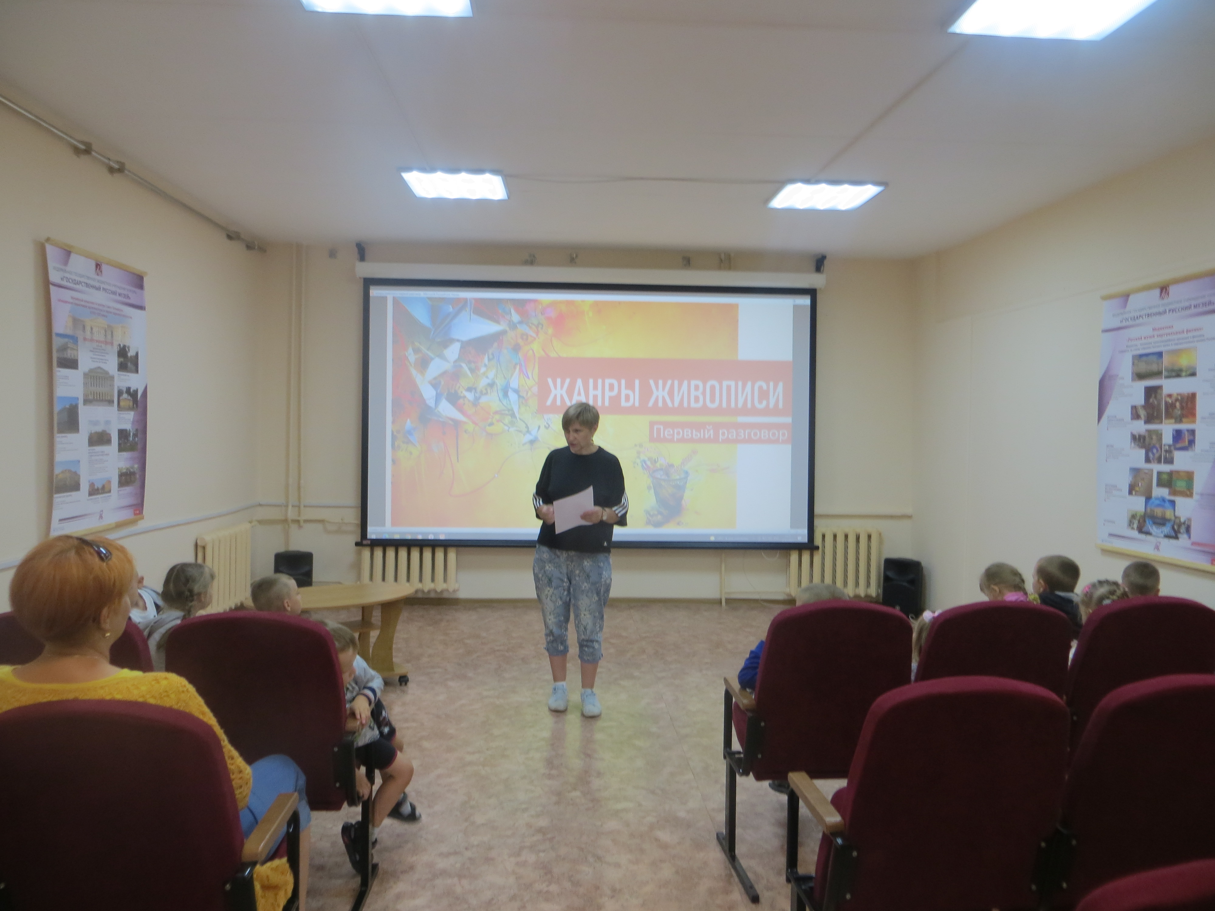 Очередное занятие с воспитанниками Солнечного детского сада прошло в виртуальном филиале Русского музея при Солнечной сельской библиотеке. Пришло время поговорить с малышами о жанрах живописи, это наш первый разговор на такую сложную тему. Для ребят была подготовлена презентация на основе картин из коллекции Русского музея. Дети узнали какими разными бывают натюрморты, какое настроение у пейзажа, и кто может посмотреть на нас с портрета. Посмотрели мультфильмы ("Маша и Медведь" серия"Картина маслом", мультфильм из серии "Пластилиновая ворона" на стихи Кушнера "Если видешь на картине...") и закрепили новые знания на экскурсии по Народной картинной галерее.