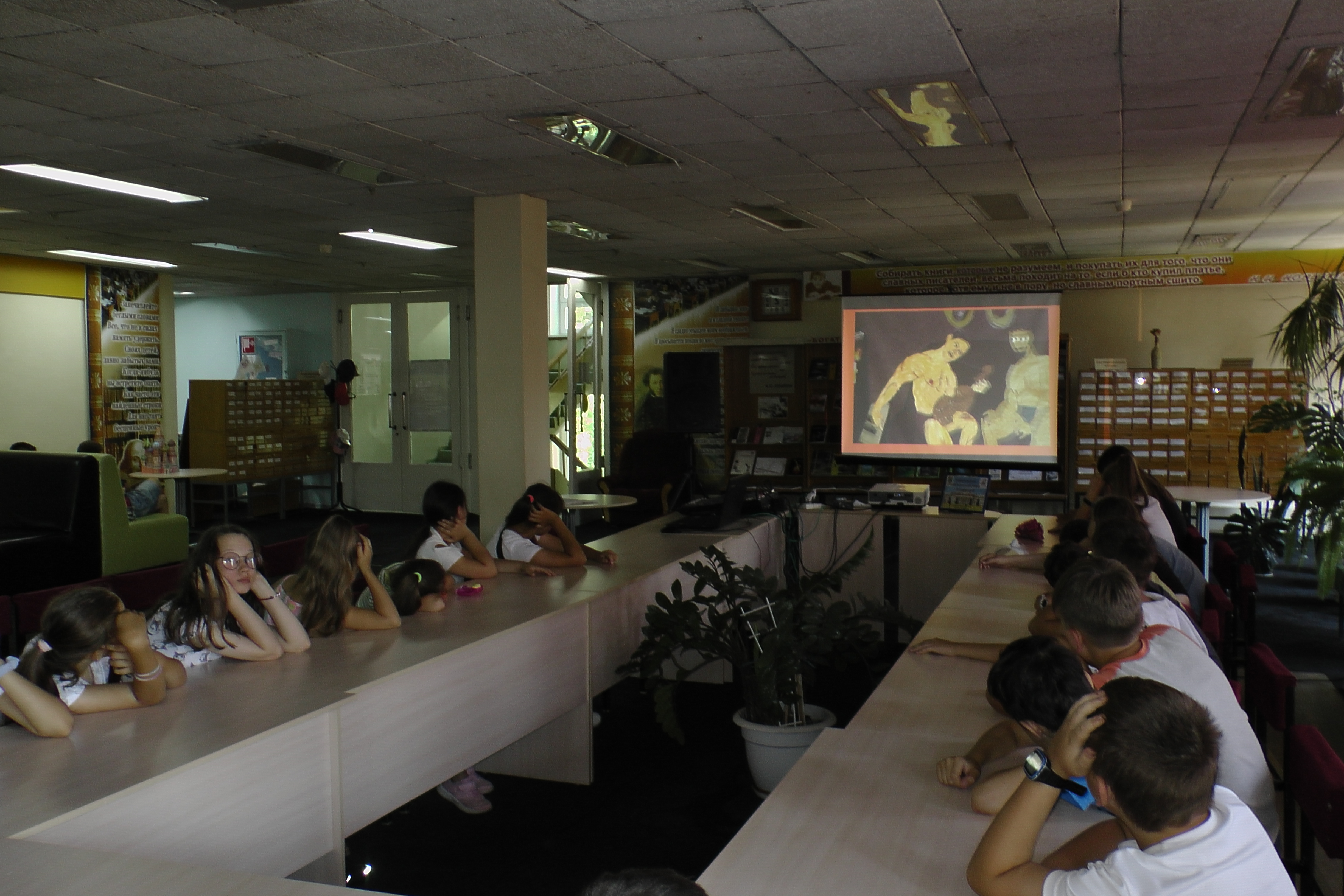 Знакомство с Русским музеем продолжается! «Живописные фантазии» зазвучали с экрана для ребят из летнего лагеря Городской гимназии. Картины из коллекции Русского музея Б.Кустодиева, М.Врубеля, И.Машкова, Д.Левицкого были не просто показаны гимназистам, а представлены в рамках реализованного проекта Русского музея совместно с Санкт-Петербургским институтом кино и телевидения – «Музей. Кадр за кадром». Дети и сами были не прочь пофантазировать… А мультипликационные истории добавили колорита и радости.