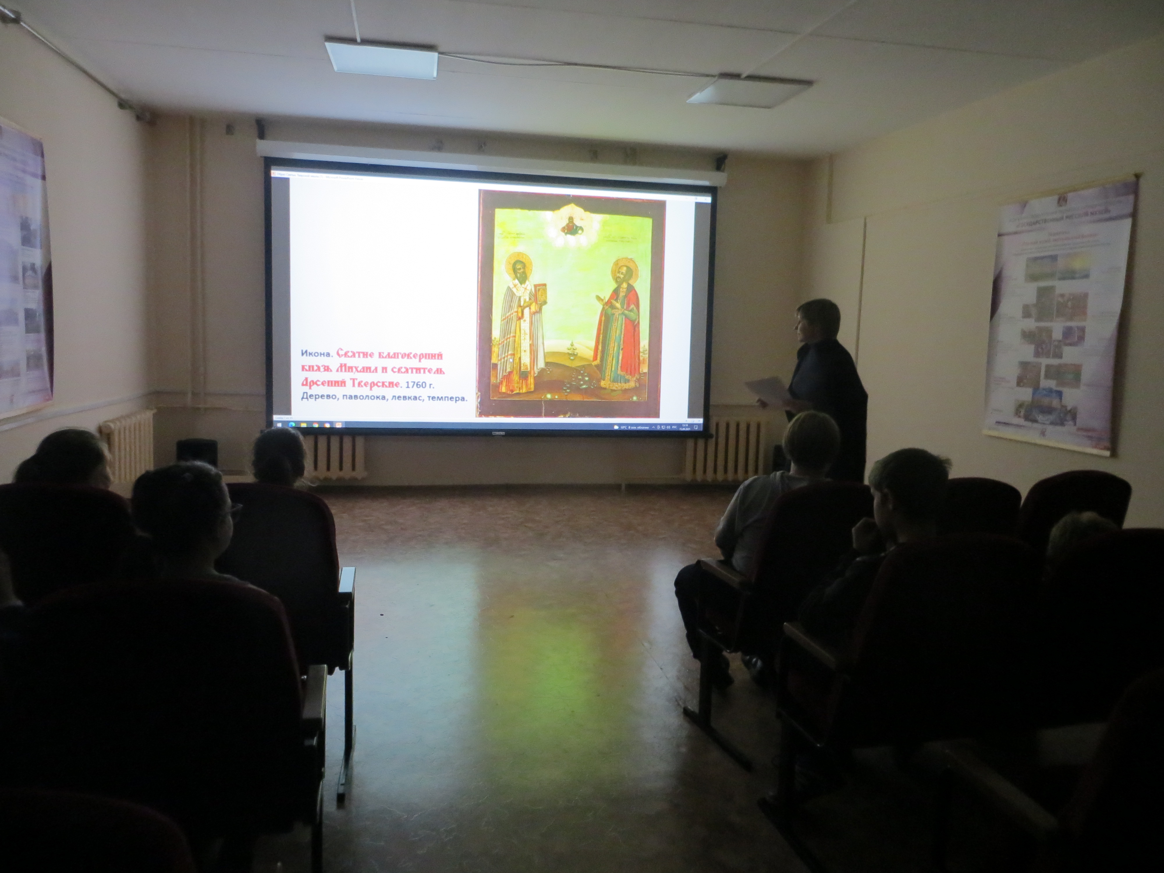 15 сентября , в день празднования 750-летия образования Тверской епархии, в виртуальный филиал Русского музея Солнечной сельской библиотеке прошло познавательное занятие для учеников 5 класса "Образы Тверских святых в живописи". Для ребят была подготовленна презентаци с иллюстрациями икон из фонда Русского музея. Из лекции они узнали о трех Тверских святых - это князь Михаил Ярославович Тверской, его супруга Анна Кашинская и Нил Столобенский.