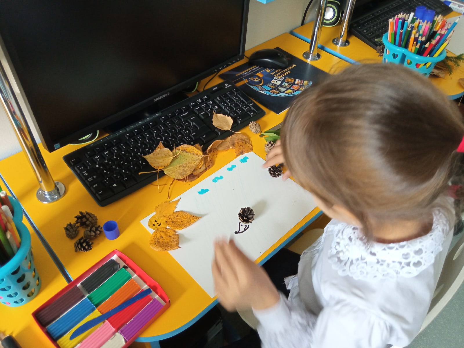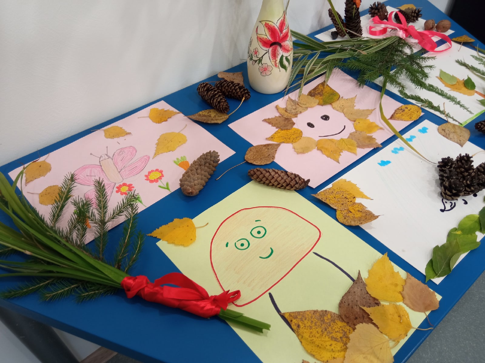 В течение месяца ребята готовили материалы для своих поделок: делали заготовки из сухих листьев, собирали шишки и веточки, знакомились с литературой из фонда библиотеки, в которой представлены различные техники и примеры изготовления поделок из природного материала. В медиатеке виртуального филиала Русского музея всем участникам мастер-класса были представлены видеофильмы, где запечатлены осенние пейзажи. Вместе с сотрудником виртуального филиала дети создавали яркие и красивые картины, букеты, сюжетные истории. Работы участников были представлены на выставке, чтобы каждый посетитель мог полюбоваться ими и выразить свое восхищение.