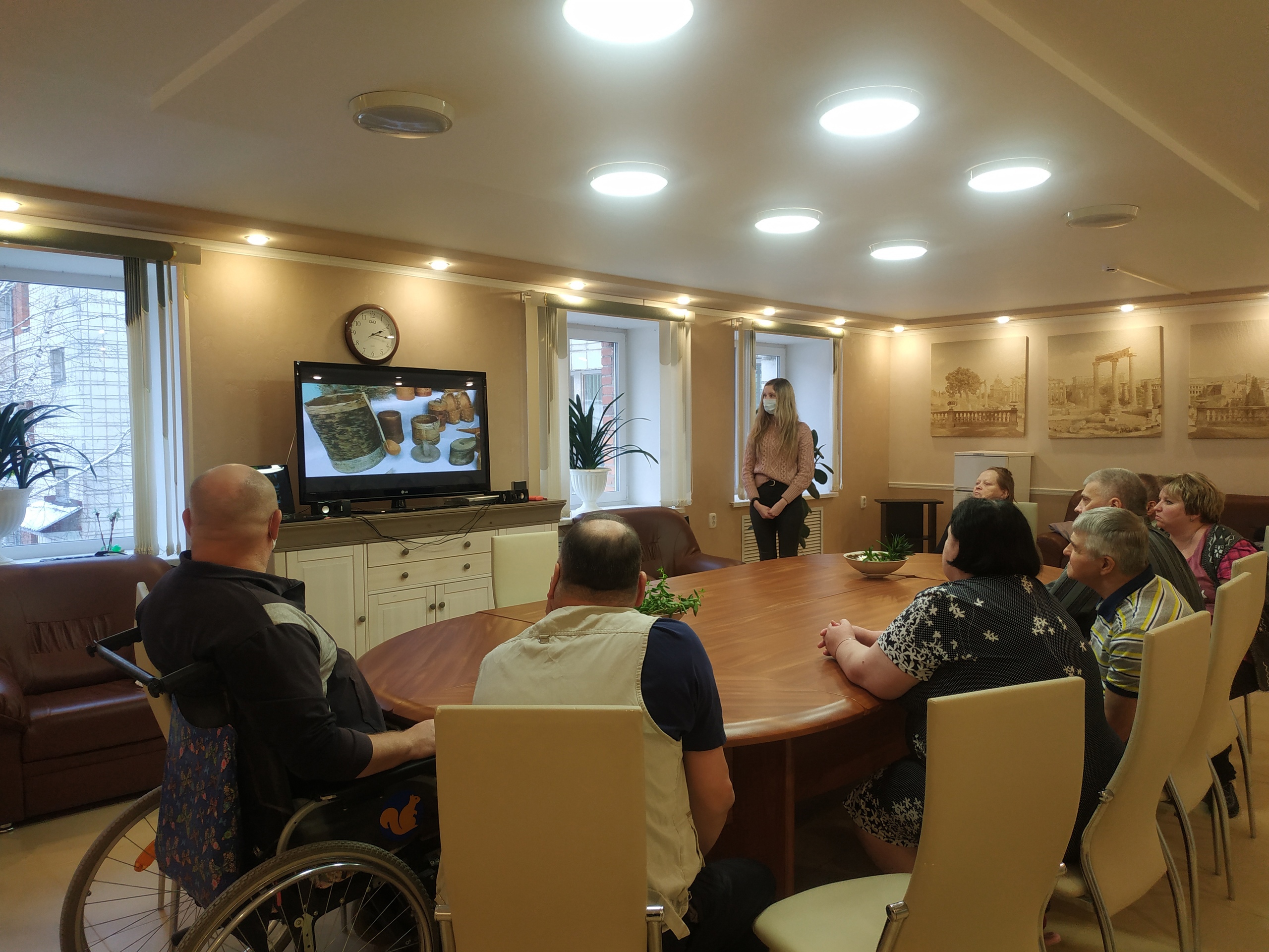 В рамках занятия мы провели виртуальную экскурсию по залам Русского музея, познакомили ветеранов с уникальными собраниями предметов быта, одежды XVII-XX вв.