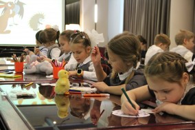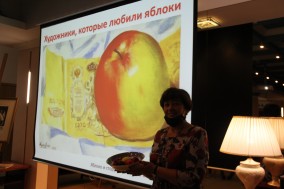 Внимательно рассмотрели натюрморты К.С. Петрова-Водкина, П. Кончаловского, И.Репина. Детям интересно было рассматривать картину «Под старой яблоней» Д. Жилинского.