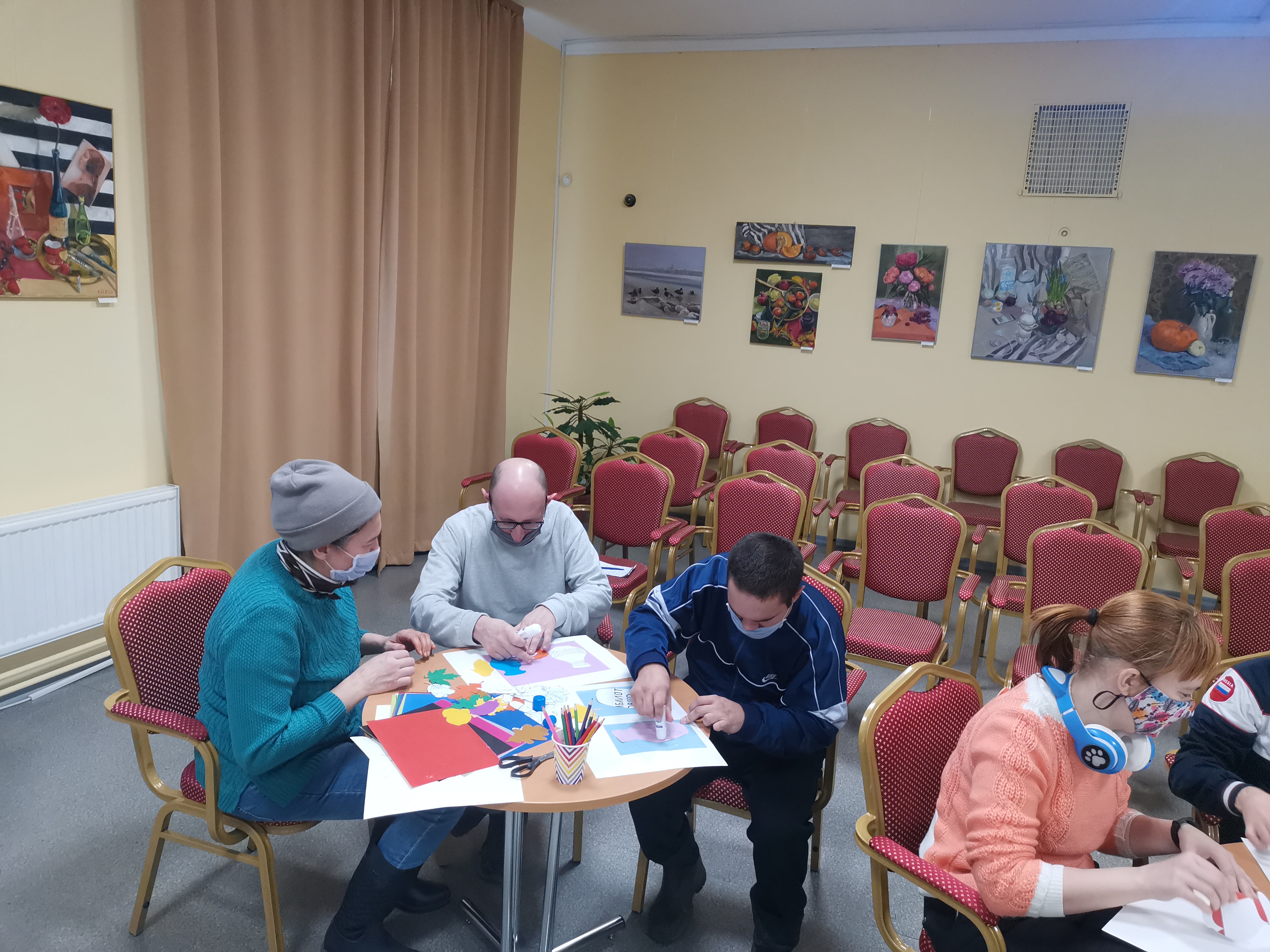 А в конце, из подготовленных материалов, наши гости смастерили свои собственные натюрморты на бумаге в технике аппликации.