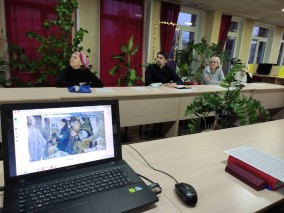 Мини-лекция «Святая Русь Михаила Нестерова» прошла в отделе обслуживания «Дворца книги» для слушателей факультета «Духовное возрождение». Картина русского художника с одноимённым названием «Святая Русь», отражающая религиозно-философские воззрения живописца, была представлена присутствующим. Слушатели факультета оценили красоту и выразительность образов, написанных Нестеровым, которые могут быть отнесены к лучшему, что было создано в русской реалистической живописи. Эстетический идеал художника Нестерова, который выразился в уходе в край безмолвной красоты родной природы, где в тишине и покое человек может познать самого себя через молитвенное созерцание, оказался понятен и близок присутствующим.