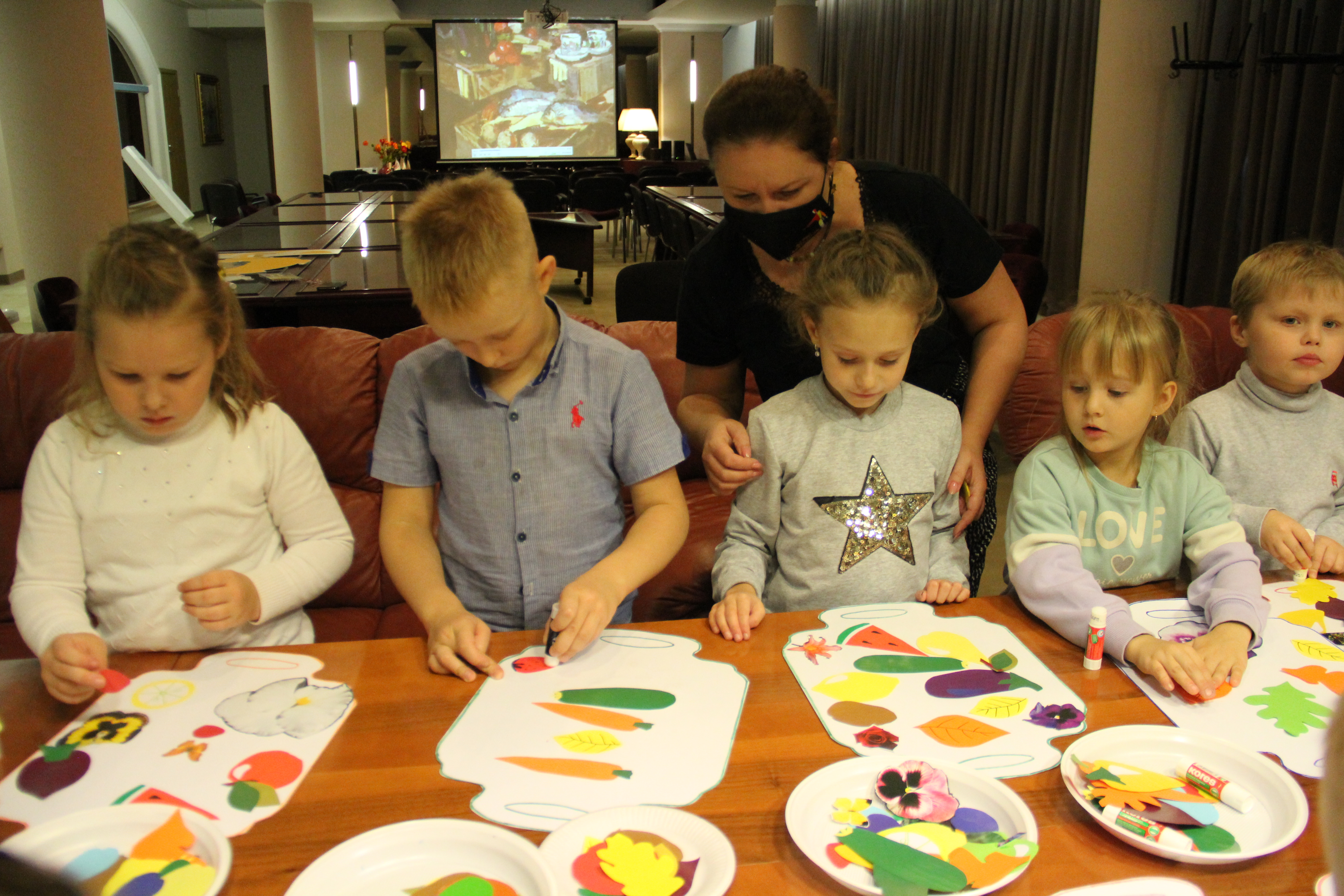 Продолжением экскурсии стал мастер-класс «Дары осени». Ребята с удовольствием собрали свои композиции на «холсте».