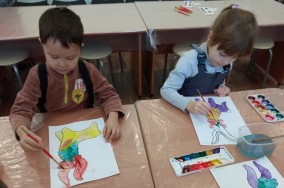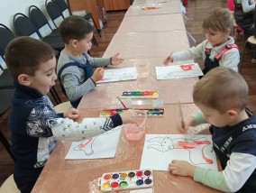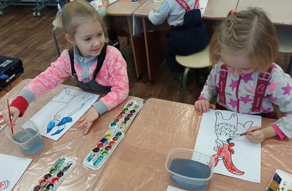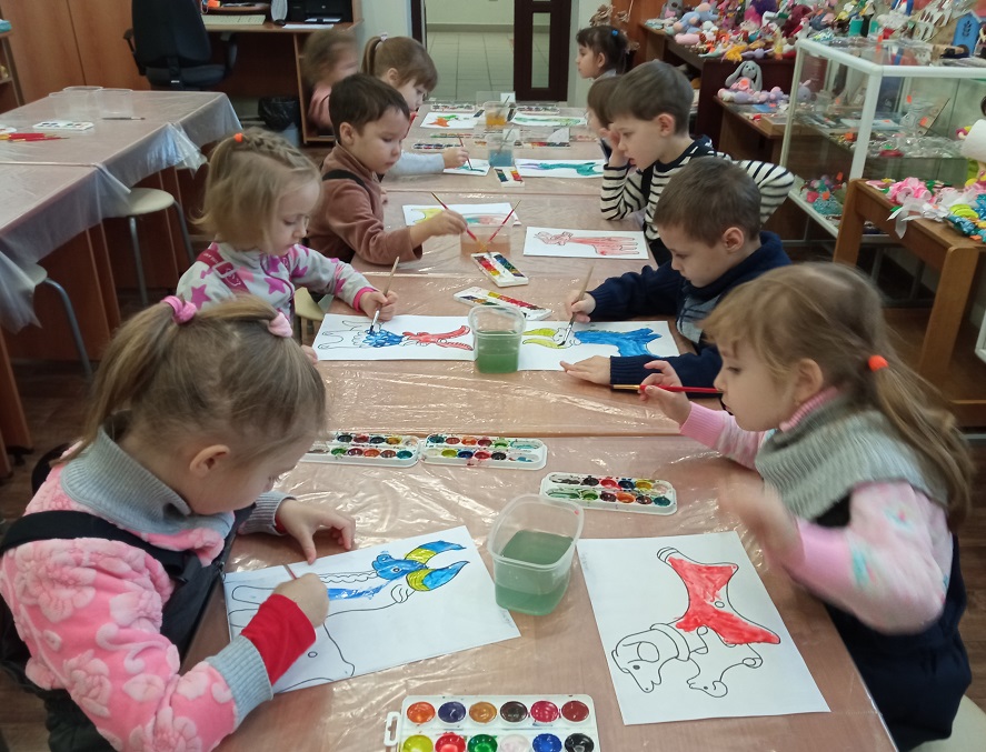 В интерактивной программе «Народное искусство из собрания Русского музея. Электронный путеводитель, каталог» медиатеки виртуального филиала дети увидели и рассмотрели, как выглядит причудливая абашевская игрушка и сами раскрасили заготовки на бумаге. Несмотря на то, что юным художникам только пять лет, у всех получились отличные рисунки.