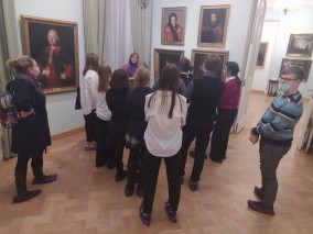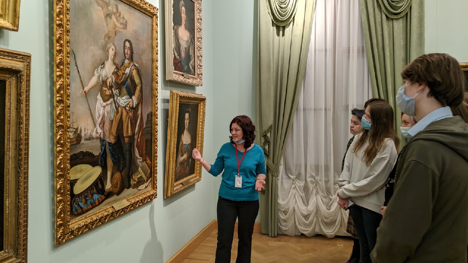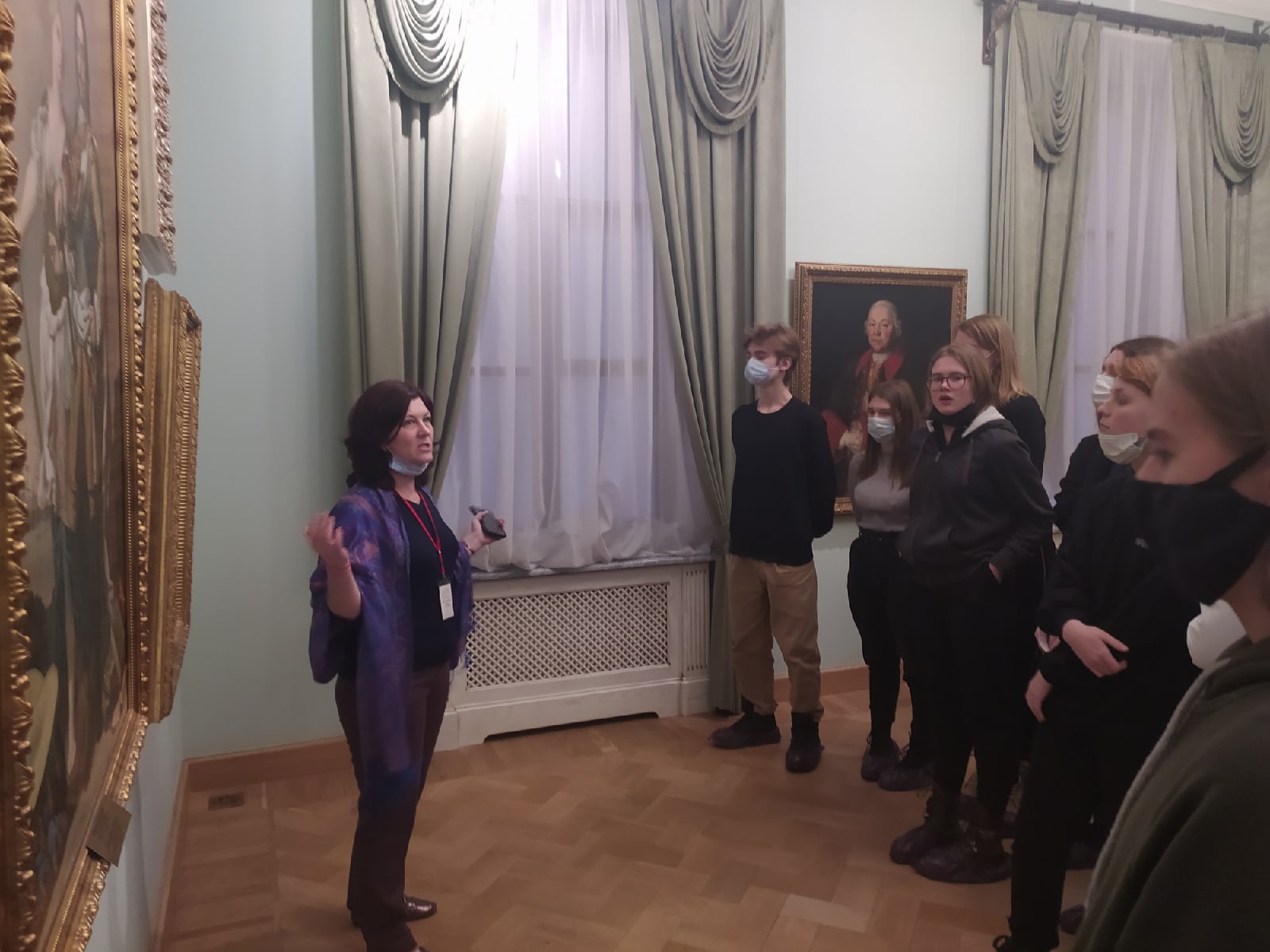 Вторая часть занятия прошла в экспозиции Тверской областной картинной галереи. На примере коллекции галереи ребята проследили развитие портретного жанра первой половины ХVIII века в подлинике.