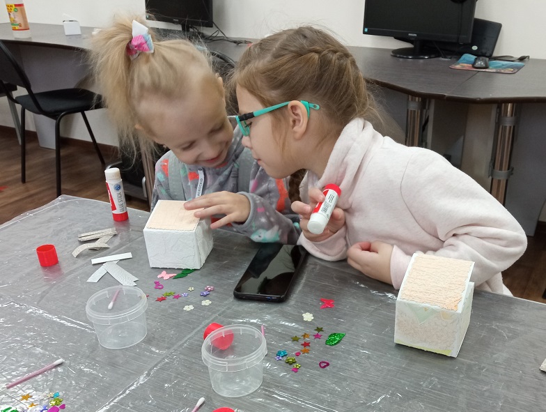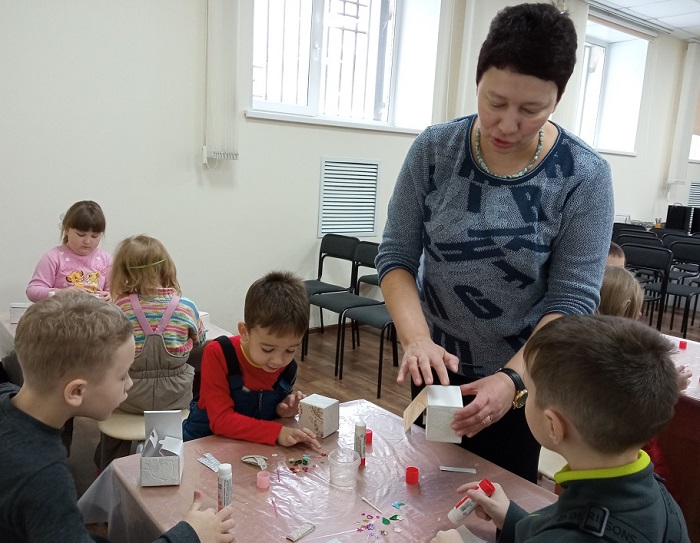 Юные посетители рассказали много стихотворений и пословиц о мамах, спели песню, которую выучили для утренника в детском саду. Потом стали рассматривать картины из коллекции Русского музея, на которых изображены мамы с детьми. Затем дети сами подготовили подарки своим мамам – шкатулочки для украшений.