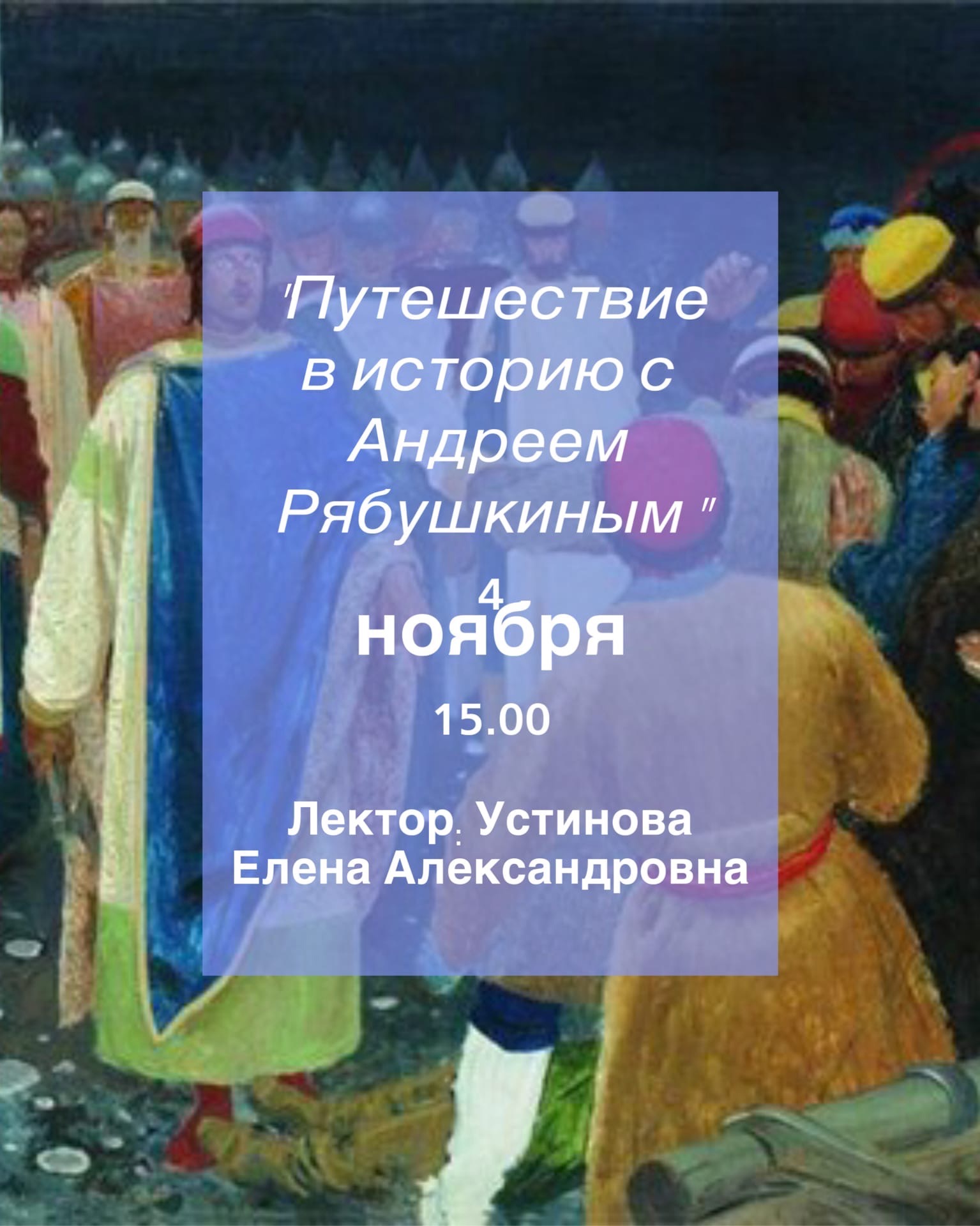 4 ноября состоялась лекция "Путешествие в историю с Андреем Рябушкиным" старшего научного сотрудника Нижнетагильского музея изобразительных искусств, кандидата исторических наук Елены Александровны Устиновой