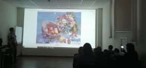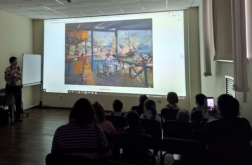 Ребятишки рассмотрели картины на портале Виртуальный Русский музей с изображёнными букетами цветов и фруктами, написанные ярко и живо, широкими мазками. Эти работы Константин Коровин выполнил на своей даче в Гурзуфе, они наполнены солнечным светом и переливами горячего воздуха.